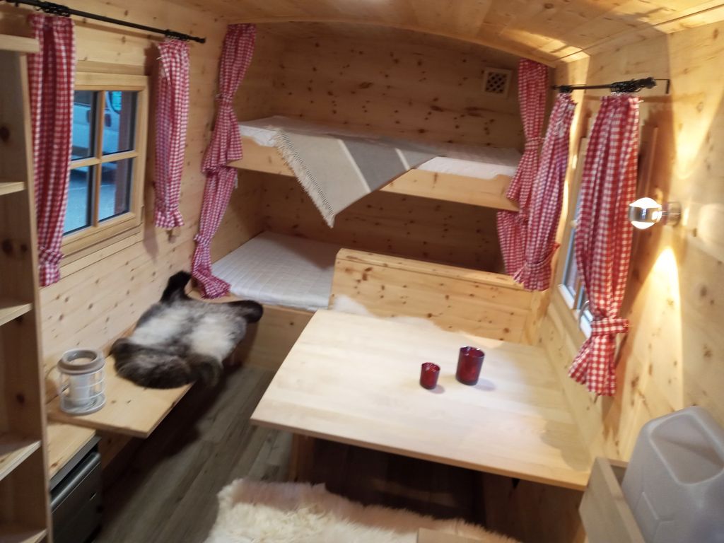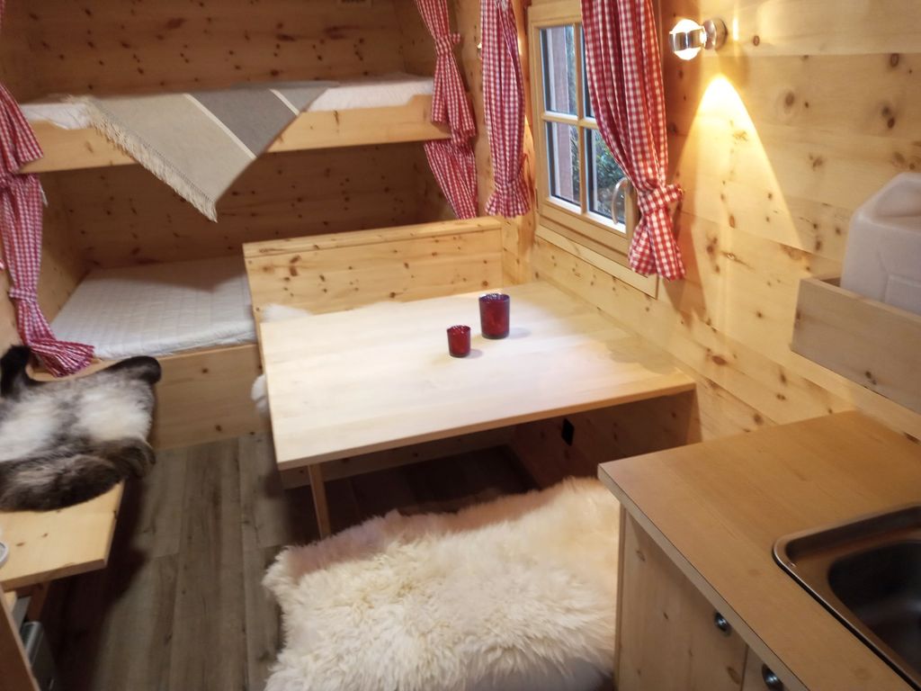 Jedes Tannhäuschen ist anders; es gibt keine festen Grundrisse. Ein "Bestellfahrzeug" kann so individualisiert werden, wie Sie es wünschen. Mit oder ohne Bad, 2 oder 8 Betten, Gasheizung oder Holzofen... es gibt praktisch keine Grenzen. Geht nicht, gibt es hier nicht.
