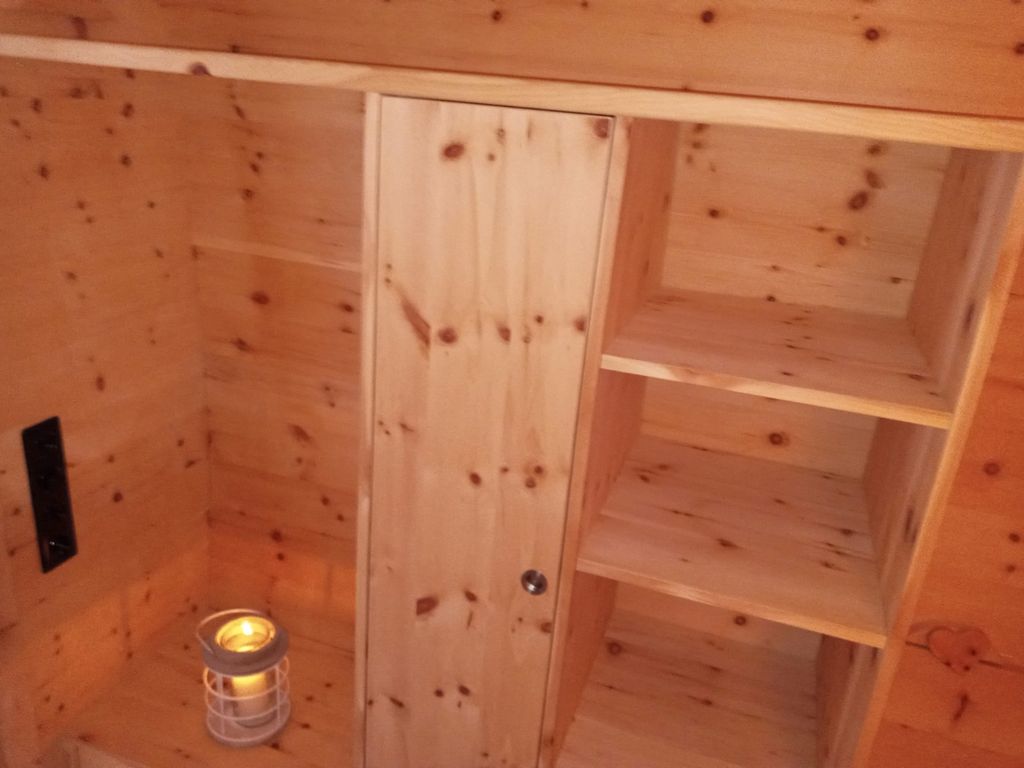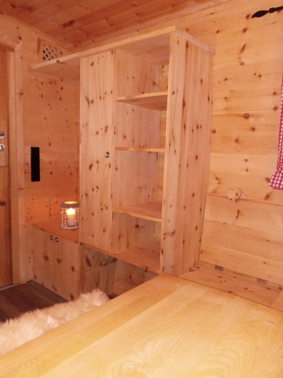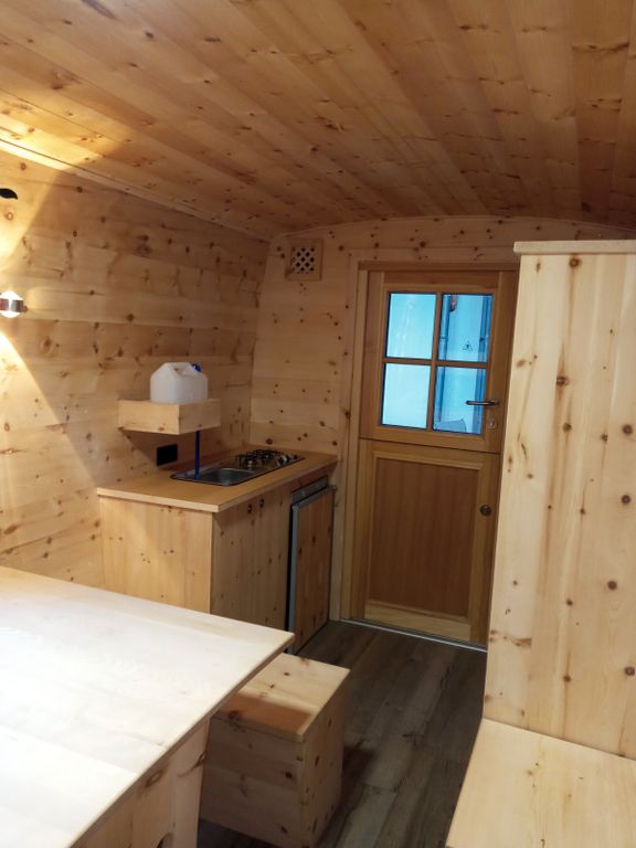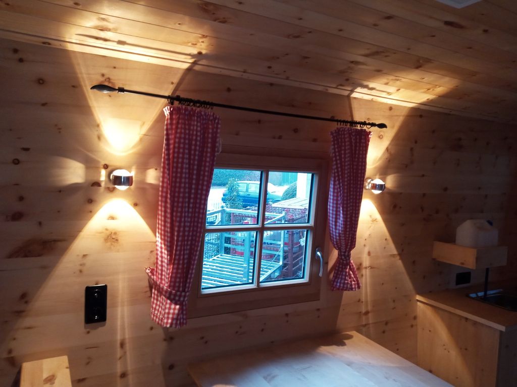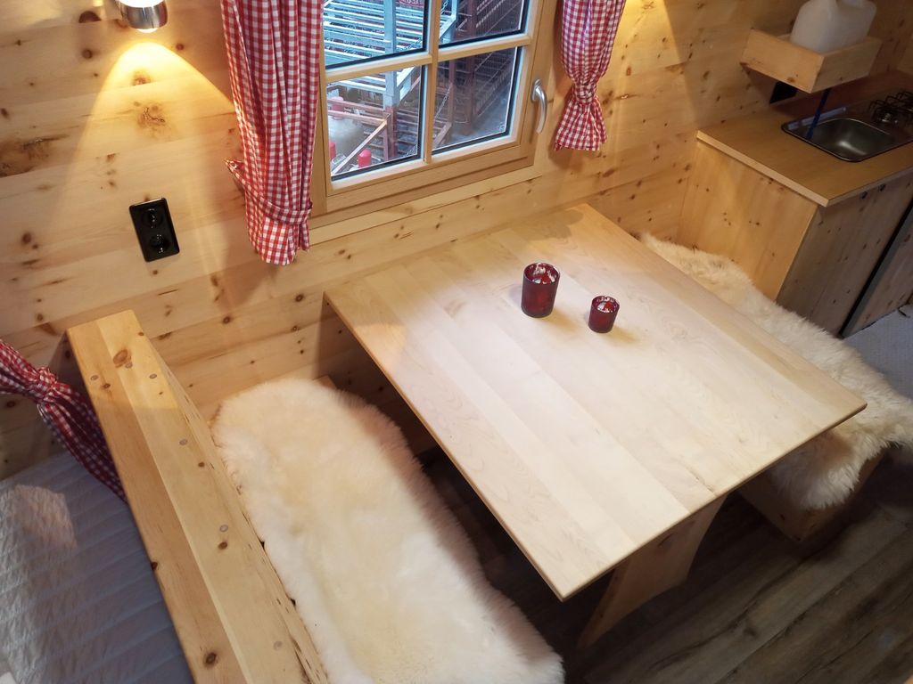 Die Tannhäuschen sind hochwertig verarbeitet und aus Thermo-Holz gebaut. Praktisch ist, dass das Holz weder gestrichen noch geölt werden muss. Der Innenraum mit einem Ausbau aus Zirbe sorgt für eine kuschelige und natürliche Atmosphäre.