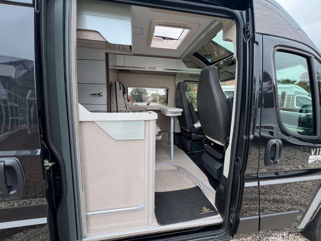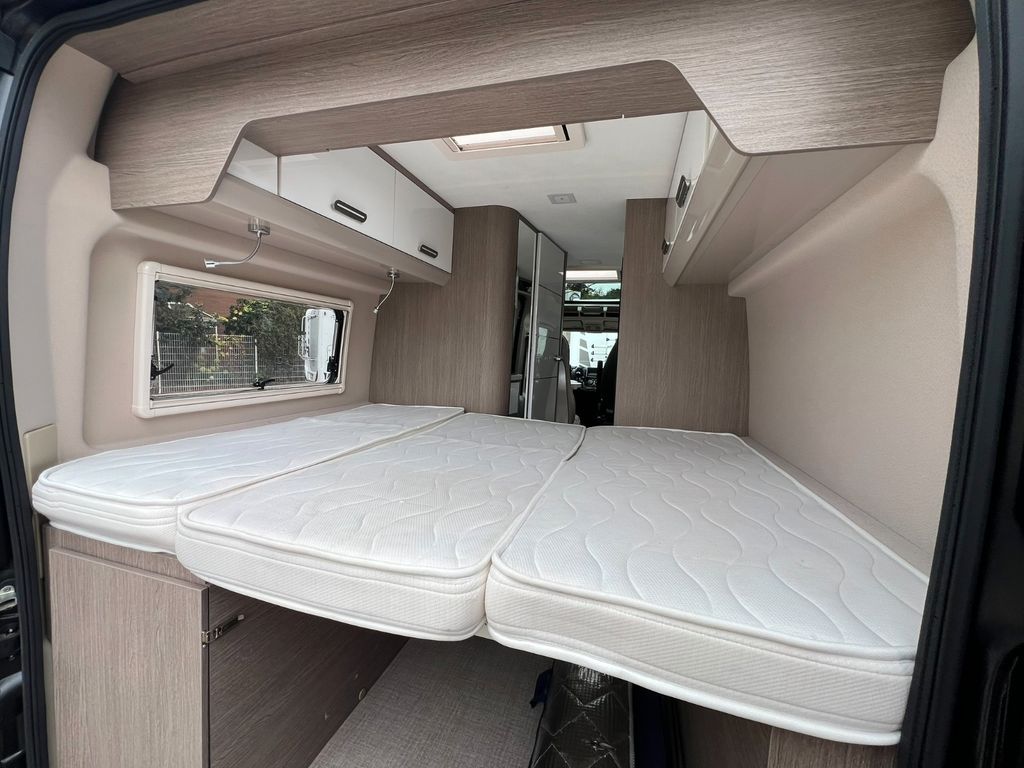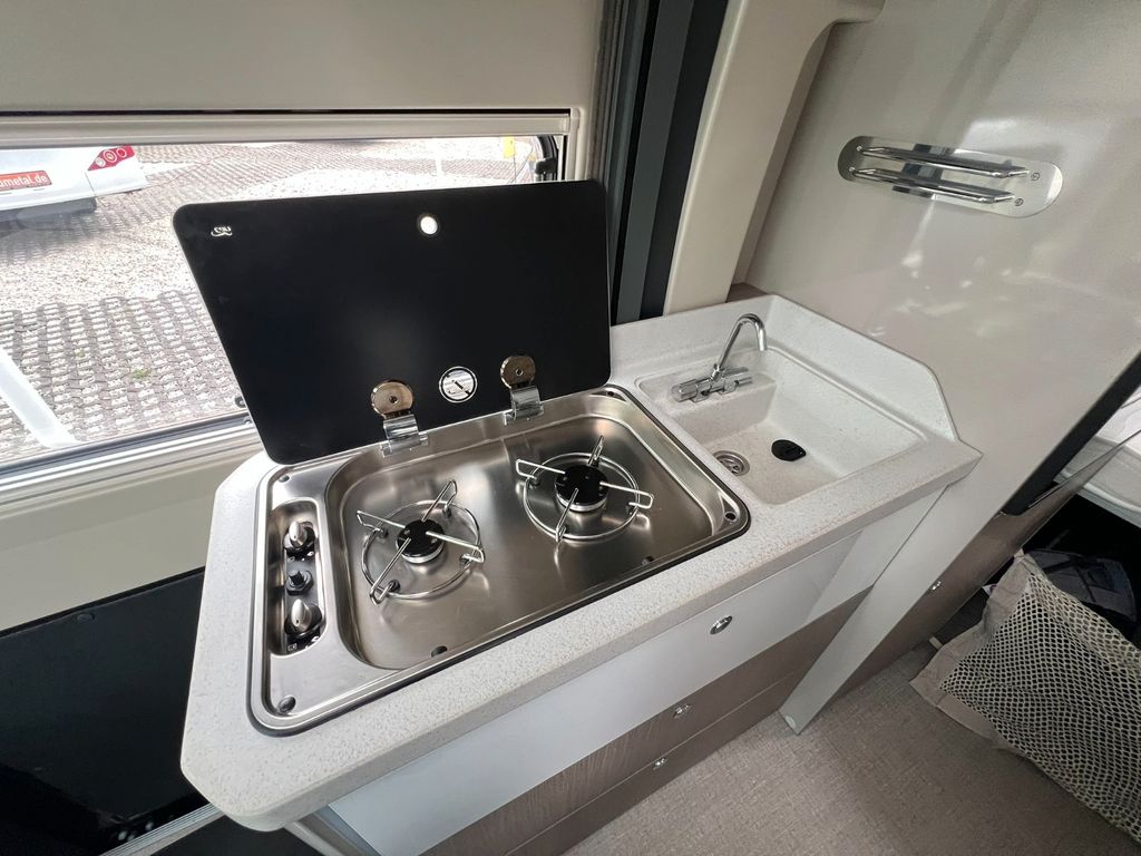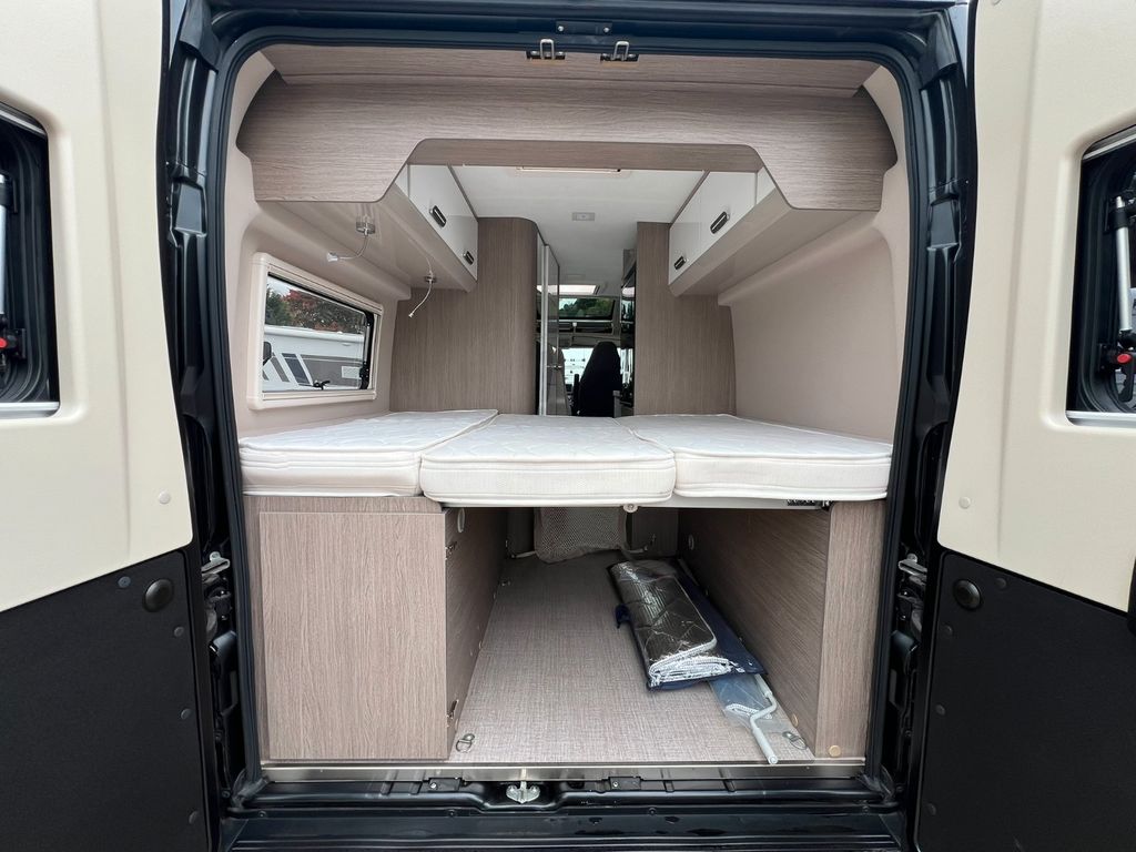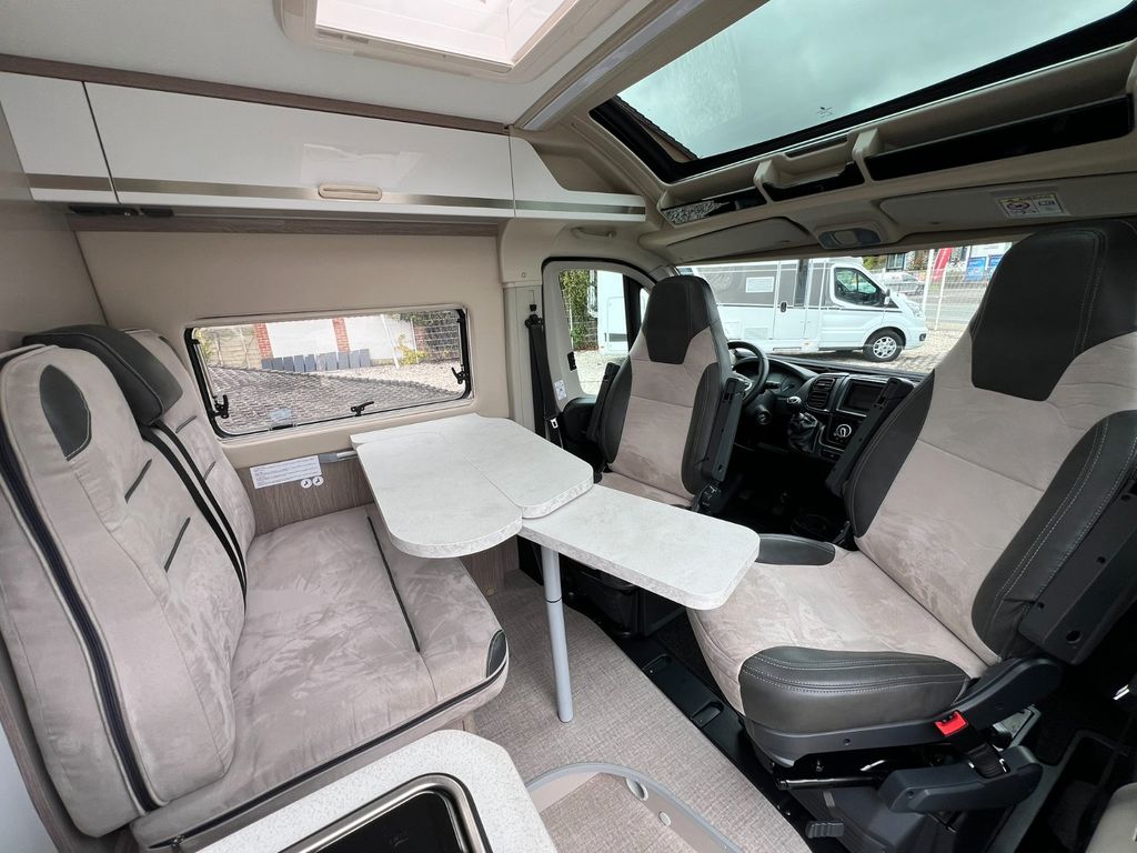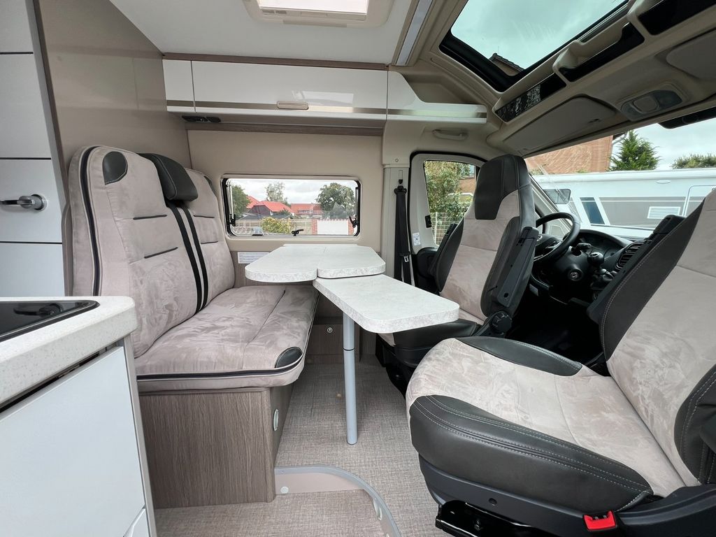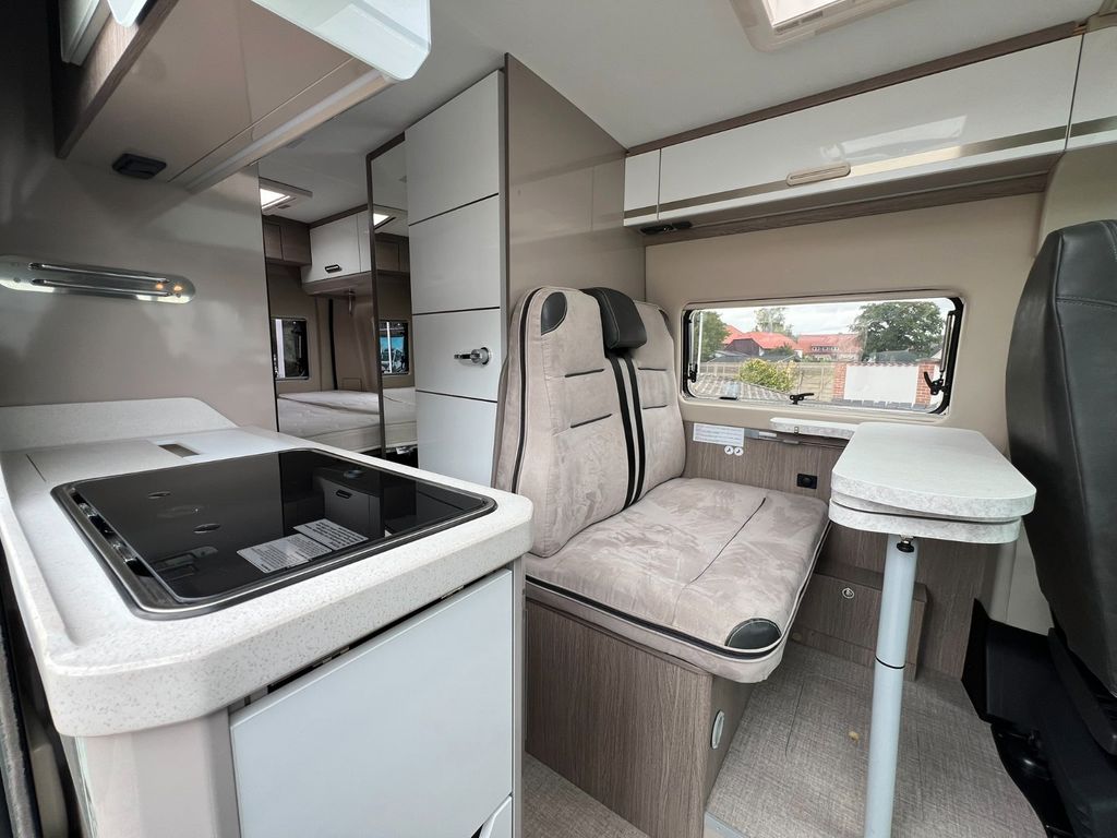 Der legendäre Grundriss, den die Van-Liebhaber bevorzugen Der kompakte (5,99 m) V114 kommt überall durch, in der Stadt wie auf dem Land! Mit seinem gemütlichen Wohnbereich, funktionalem Bad & Küche begeistert er Sie auch durch sein Doppelbett im Heck, das für mehr Platz angehoben werden kann. Er bietet folgende Ausstattungsmerkmale