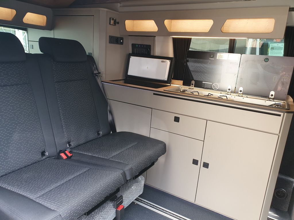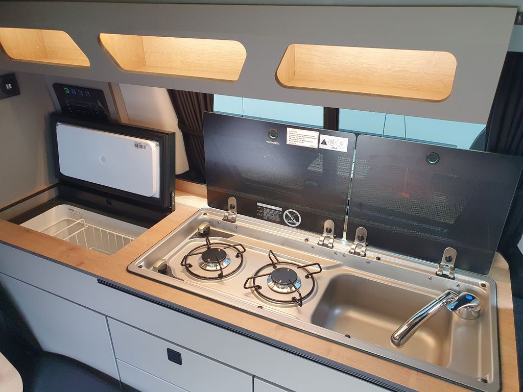 - Küchenzeile mit 2-flammigem Kocher und Spülbecken