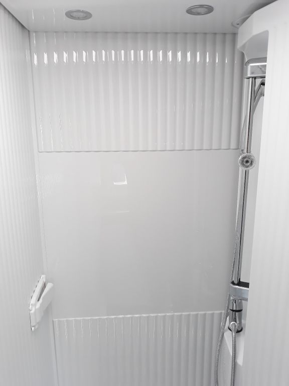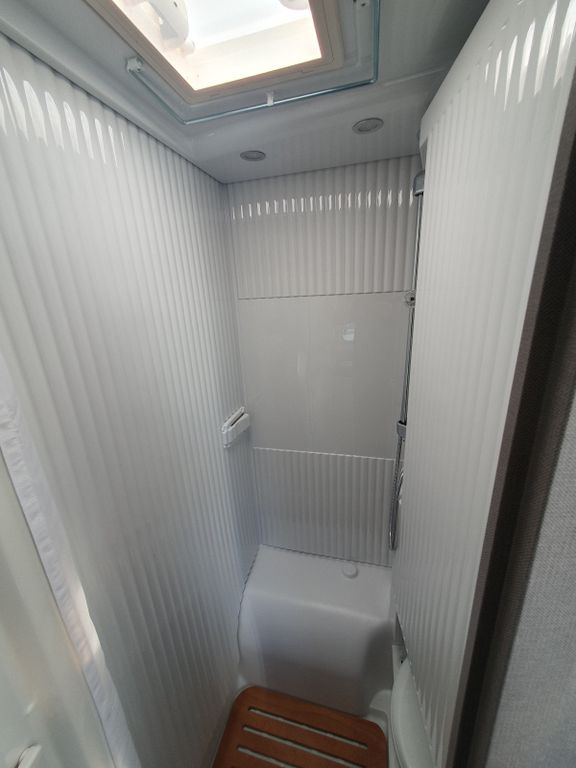 Holzlattenrost in der Dusche,Captain Chair mit Bezügen,zusätzliche Steckdose