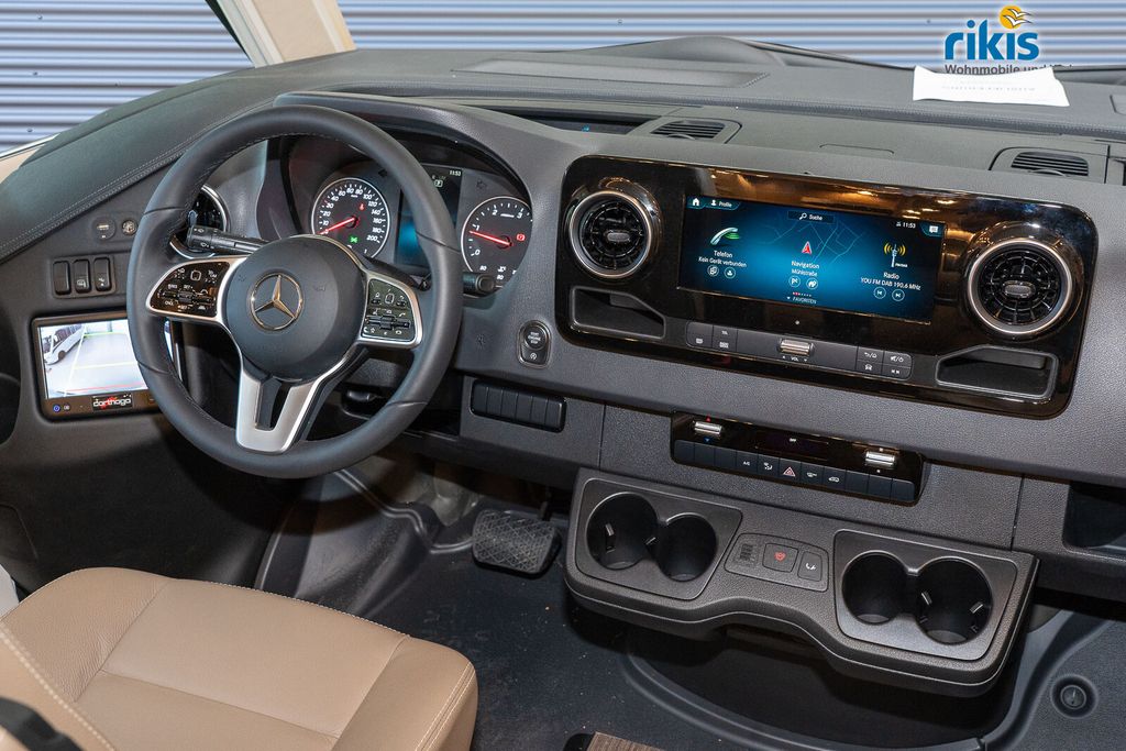Basis-Plus-Paket (Radzierblenden, Halbautomatische Klimaanlage Tempmatik, Tempomat, Ladebooster, Kraftstofftank 92 Liter, Vorderachse mit erhöhter Traglast, Lederlenkrad mit Option Multifunktionstasten (bei Schaltgetriebe inkl. Leder-Schalthebel), Kombiinstrument mit Farbdisplay, Regensensor, Elektrische Feststellbremse, Busspiegel "Carthago best view" mit Busspiegelgehäuse schwarz / weiß, verstell- und beheizbar, Fahrerhauskomfortsitze mit Neigungs- und Höhenverstellung (vorn / hinten), Radiovorbereitung mit Dachantenne mit DAB+, Lautsprecher (4 x), Radio / Moniceiver Pioneer 6,8" inkl. DAB+, Dachluke Midi-Heki mit LED-Spots über L-Wohnsitzgruppe, Große Rollergaragentür auf der Fahrerseite, XL-Aufbautür "premium two 2.0" (Breite 63 cm) mit Doppelverriegelung, Fenster- und Insektenschutzrollo, SOG-Toilettenentlüftung über Dachkamin, Abwasserschlauchset zur komfortablen Entsorgung, USB-Steckdose im Dachstauschrank über Heckbett, Vorbereitung Dachhaubenlüfter elektrisch, Vorbereitung Solaranlage, Vorbereitung Sat-Anlage, Vorbereitung Rückfahrkamera (Einzellinse))
