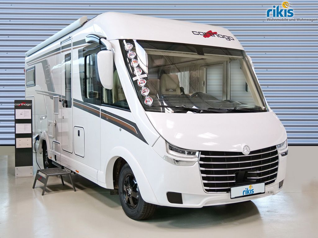 Basis-Plus-Paket (Radzierblenden, Halbautomatische Klimaanlage Tempmatik, Tempomat, Ladebooster, Kraftstofftank 92 Liter, Vorderachse mit erhöhter Traglast, Lederlenkrad mit Option Multifunktionstasten (bei Schaltgetriebe inkl. Leder-Schalthebel), Kombiinstrument mit Farbdisplay, Regensensor, Elektrische Feststellbremse, Busspiegel ?Carthago best view? mit Busspiegelgehäuse schwarz / weiß, verstell- und beheizbar, Fahrerhauskomfortsitze mit Neigungs- und Höhenverstellung (vorn / hinten), Radiovorbereitung mit Dachantenne mit DAB+, Lautsprecher (4 x), Radio / Moniceiver Pioneer 6,8" inkl. DAB+, Dachluke Midi-Heki mit LED-Spots über L-Wohnsitzgruppe, Große Rollergaragentür auf der Fahrerseite, XL-Aufbautür ?premium two 2.0? (Breite 63 cm) mit Doppelverriegelung, Fenster- und Insektenschutzrollo, SOG-Toilettenentlüftung über Dachkamin, Abwasserschlauchset zur komfortablen Entsorgung, USB-Steckdose im Dachstauschrank über Heckbett, Vorbereitung Dachhaubenlüfter elektrisch, Vorbereitung Solaranlage, Vorbereitung Sat-Anlage, Vorbereitung Rückfahrkamera (Einzellinse))