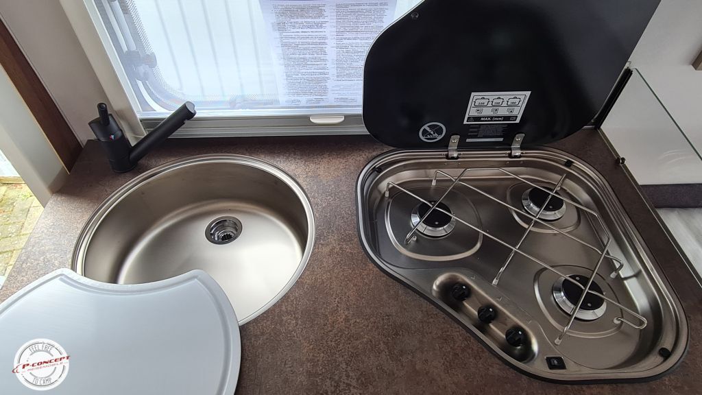 3-Flammen-Kocher mit Zündsicherung, elektrischer Zündung, Flammenschutz und Glasabdeckung