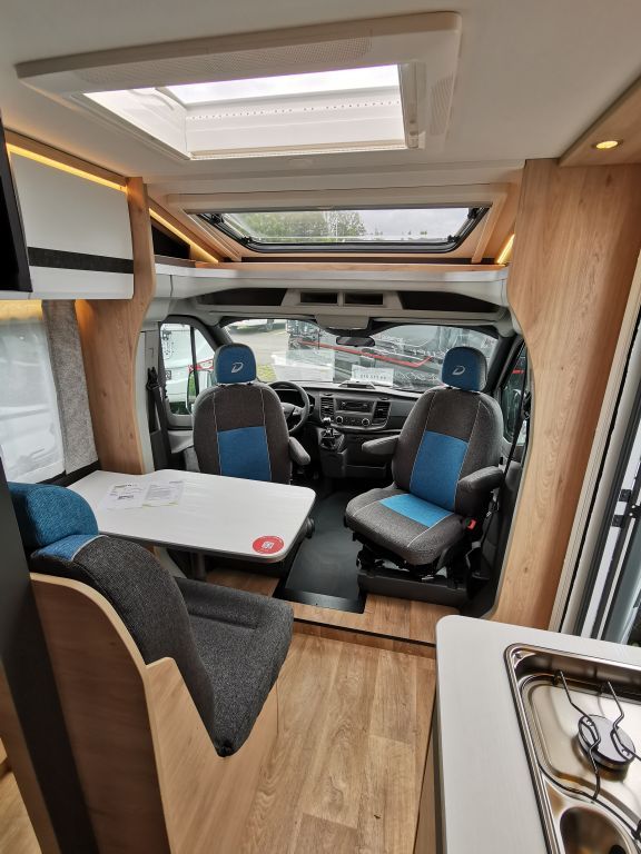Comfort Paket T 15 (Teil 2/2) Fernlicht-Assistent und Fahrspurhalte-Assistent, Scheinwerfer-Assistent mit Tag/Nacht-Sensor, Wohnraumtür mit Fenster inkl. Verdunkelung und Zentralverriegelung (inkl. Fahrerhaustüre), Ausstellfenster in der T-Haube, Verdunklungsjalousien im Fahrerhaus, Panorama-Dachhaube 70 x 50 cm im Wohnraum, Wohnwelt Salerno inkl. Fahrer- und Beifahrer-Sitzbezug, Indirekte Wandflächen-Ambientebeleuchtung , Indirekte Ambientebeleuchtung über den Dachstauschränken, Stauraum-Türe links