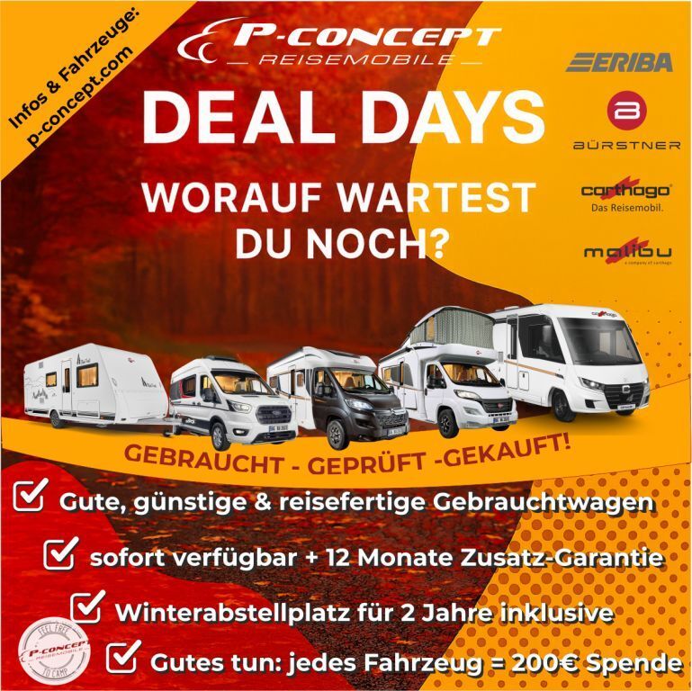 Weitere Informationen**DEAL DAYS bei P-concept bis 31.10.2025 Wer bei den DEAL DAYS ein Fahrzeug kauft, erhält für unsere jungen gebrauchten eine 12-monatige Neuwagenanschlussgarantie sowie zwei Jahre einen gratis Winter-Abstellplatz für sein Fahrzeug bei uns kostenlos! Und das Beste Für jedes während der Aktionstage verkaufte Fahrzeug spenden wir zusätzlich 200€ für den guten Zweck in unserer Regio (100€ gehen an ein Wiederaufforstungsprogramm für den Harz und die übrigen 100€ abwechselnd an den Tierschutz Gifhorn und das Tierheim Wolfsburg). Alle Infos zur Aktion httpsp-concept.com/dealdays/**