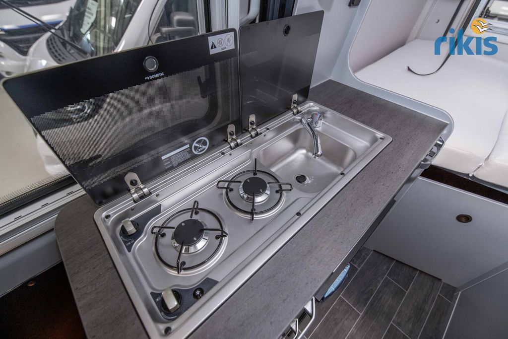 Voltage-Paket (Ambientebeleuchtung im Wohnraum/Nasszelle, Regenrinne über der Schiebetür mit LED (dimmbar), Leseleuchten im Fahrerhaus, USB-Steckdose (1 Stück), im Küchenbereich, 230 V SCHUKO-Steckdose zusätzlich, im Heck (1 Stück), USB-Steckdose (1 Stück), im Heck, 230 V SCHUKO-Steckdose zusätzlich, in der Sitzgruppe (1 Stück))