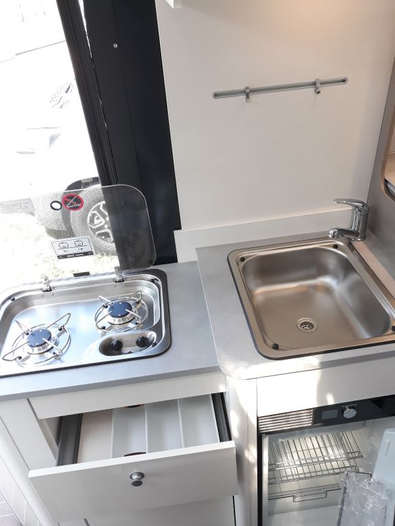 Die passenden Gerichte dazu kannst du auf der Kocher-Spüle Kombi zubereiten und zwar reichlich, denn im großen Kühlschrank finden Vorräte für mehrere Tage Platz.
