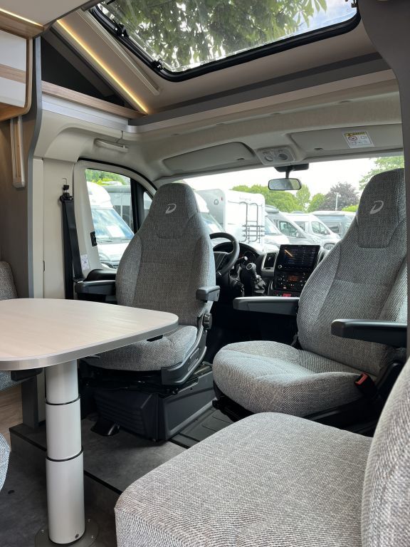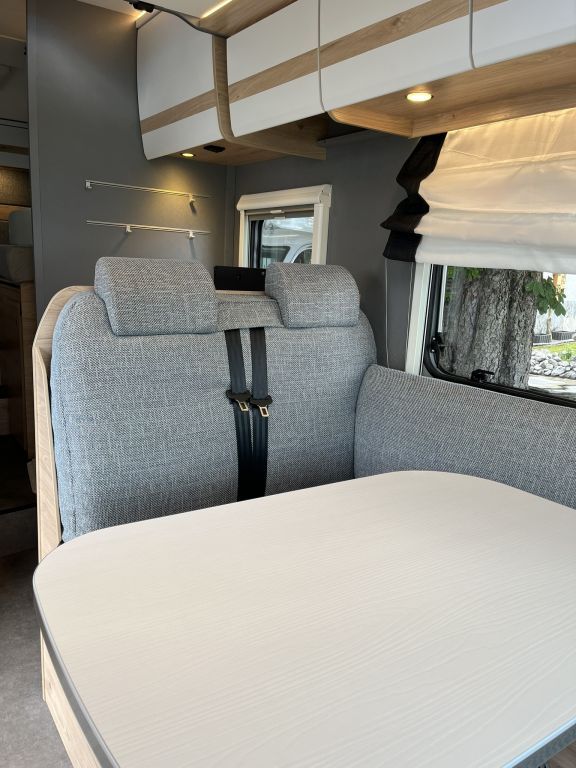 Family-Paket T 7052 DBL Ausstellfenster in der T-Haube, Wohnraumtür mit Fenster inkl. Verdunkelung und Zentralverriegelung (inkl. Fahrerhaustüre), Verdunklungsjalousien im Fahrerhaus, Panorama-Dachhaube 70 x 50 cm im Wohnraum, Indirekte Ambientebeleuchtung über den Dachstauschränken, Indirekte Wandflächen-Ambientebeleuchtung , Stauraum-Türe links; NUR FÜR T 7052 DBL