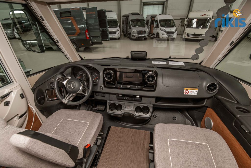 Basis Plus Paket Mercedes Vorbereitung Rückfahrkamera (Einzellinse), Fahrerhaussitze mit Neigungs- und Höhenverstellung (vorn / hinten),Regensensor, Radiovorbereitung mit Dachantenne mit DAB+, Lautsprecher (4x), DVB-T2 Empfang, Vorderachse mit erhöhter Traglast, Insektenschutzrollo Aufbautüre, Elektrische Feststellbremse, Vorbereitung Solaranlage, Große Rollergaragentür auf der Fahrerseite, Ladebooster, Abwasserschlauchset zur komfortablen Entsorgung, USB-Steckdose im Dachstauschrank über Heckbett, Mercedes MBUX 10,2" Multimediasystem anstelle Radio/CD/DVD Doppel DIN inkl. Navigation, DAB +, Touchscreen, Verkehrszeichenassistent (MERCEDES), Lenkrad mit Höhen- und Neigungsverstellung, Kraftstofftank 92 Liter, Vorbereitung Sat-Anlage, Dachkuppel Midi-Heki mit LED-Spots über L-Wohnsitzgruppe, Kombiinstrument mit Farbdisplay, Vorbereitung Dachhaubenlüfter elektrisch, SOG-Toilettenlüftung über Dachkamin, Vollautomatische Klimaanlage Thermotronic, Multifunktions- und Lederlenkrad mit Höhen- und Neigungsverstellung