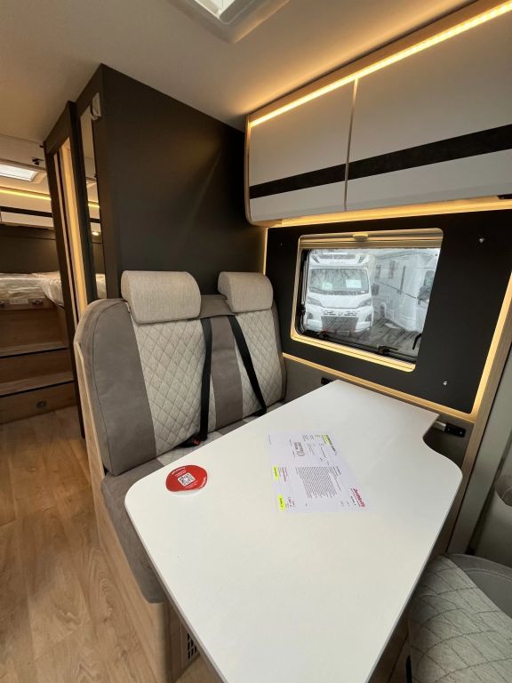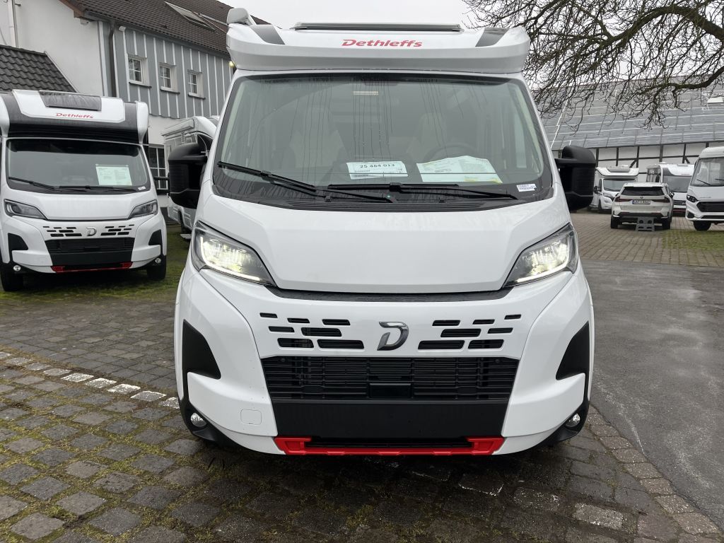 Active-Paket T4 (Verdunklungsjalousien im Fahrerhaus, Wohnraumtür mit Fenster inkl. Verdunkelung und Zentralverriegelung (inkl. Fahrerhaustür), Panorama-Dachhaube 70 x 50 cm im Wohnraum, Küchenrückwand, Light Moments Küchenrückwand beleuchtet, Light Moments Fensterverkleidung im Wohnraum beleuchtet, Light Moments Indirekte Ambientebeleuchtung über den Dachstauschränken, Light Moments Indirekte Wandflächen-Ambientebeleuchtung, Bettumbau Einzelbetten zu Doppelbett, Fahrerhaus Klimaanlage automatisch, Digitaler Tacho mit 7"-Kombiinstrument und Wireless Phone Charger in der Mittelkonsole, Voll LED Frontscheinwerfer, Elektrische Feststellbremse, Rückfahrkamera (Einfachkamera), Dethleffs Naviceiver inkl. DAB+, Truck Navigation, Wireless Apple CarPlay und Android Auto, Doppelverglaste Rahmenfenster mit Verdunklung & Mückenschutz, Raumhoher Kompressor Kühlschrank mit separatem Frosterfach (131 l), Duschrost, Digitales Bedienelement für Warmluftheizung, Vorbereitung Solar, Vorbereitung Dach-Klimaanlage, Vorbereitung zweite Rückfahrkamera, Vorbereitung SAT-Anlage, Wohnwelt Jupiter, Active Außendesign (Heckleuchtenträger mit schwarzem Diffusor, erweiterte Beklebung, Skidplate "rot"), Sitzgruppe mit Gurtbank inkl. zwei 3-Punkt-Gurten und einhängbarem und erweiterbarem Tisch, Stauraum-Türe links, Dachmarkise Omnistor 4.0 m (manuell), Abwassertank isoliert)