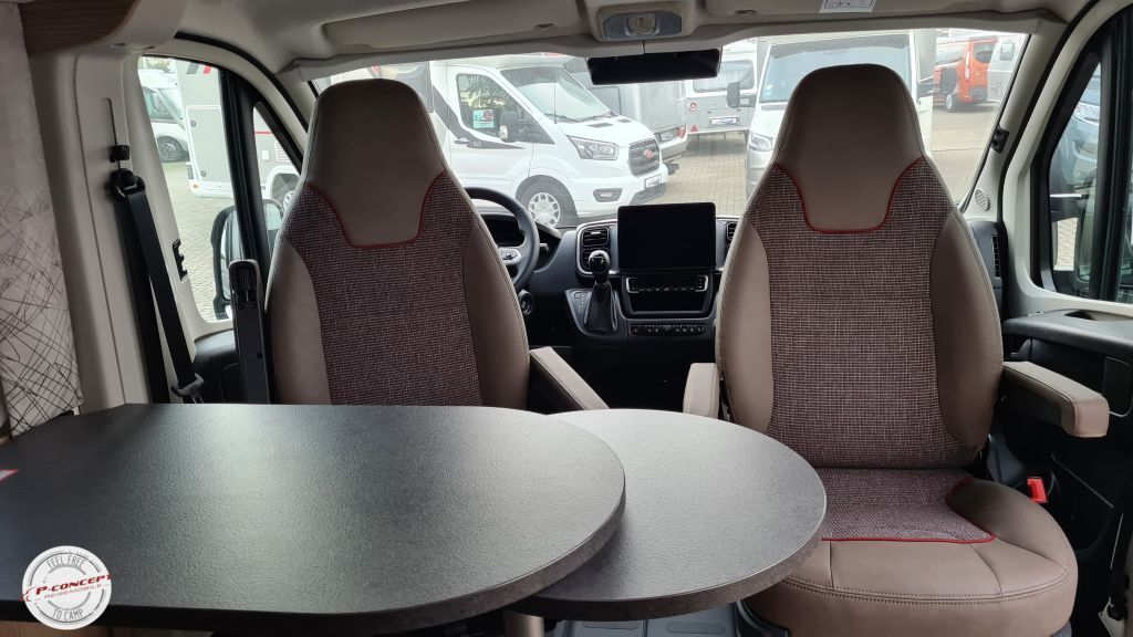 Pilotensitze in Wohnraumstoff bezogen inkl. gepolsterten Armlehnen