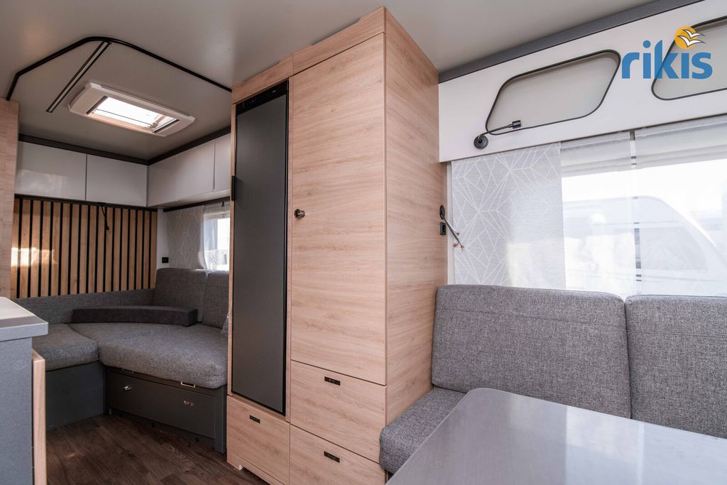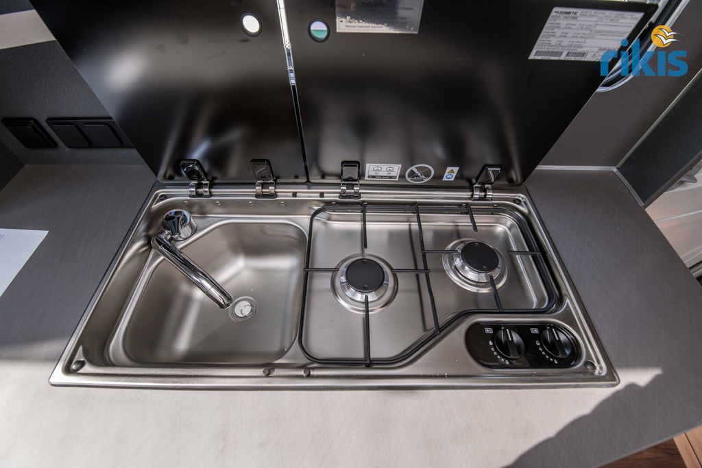 Gas Paket (Gasschlauch Ausführung D/AT/ES/FI/BE/IT/NL/DK, Gasanlage 30 mbar, Kühlschrank 142 Liter, Gasregler Ausführung D/AT/ES/FI/BE/IT/NL/DK, Heizung TRUMA Combi 4, Kocher-Spülen-Kombination inkl. 2-Flammen-Kocher mit elektrischer Brennerzündung und geteilter Glasabdeckung, Gaskasten mit Außenklappe)
