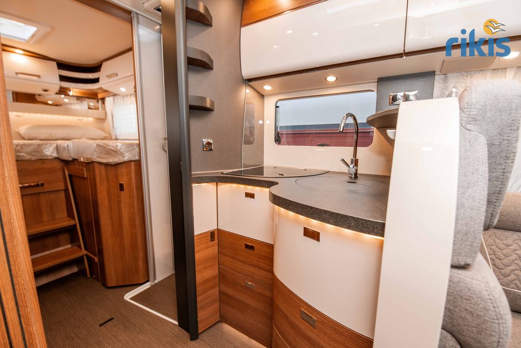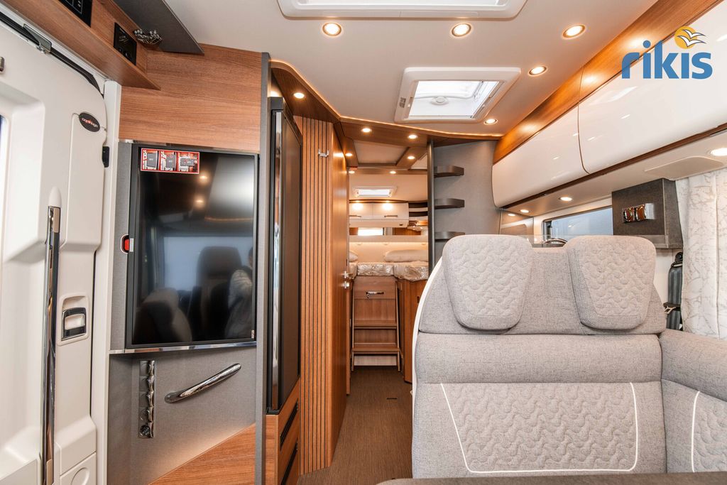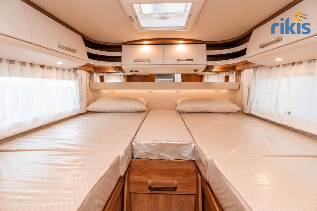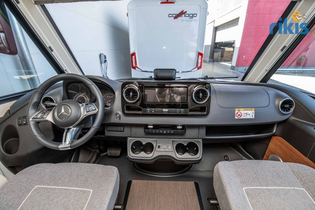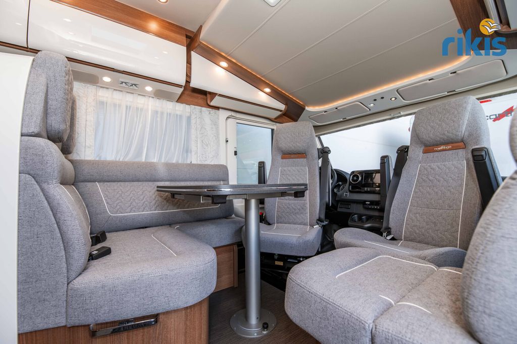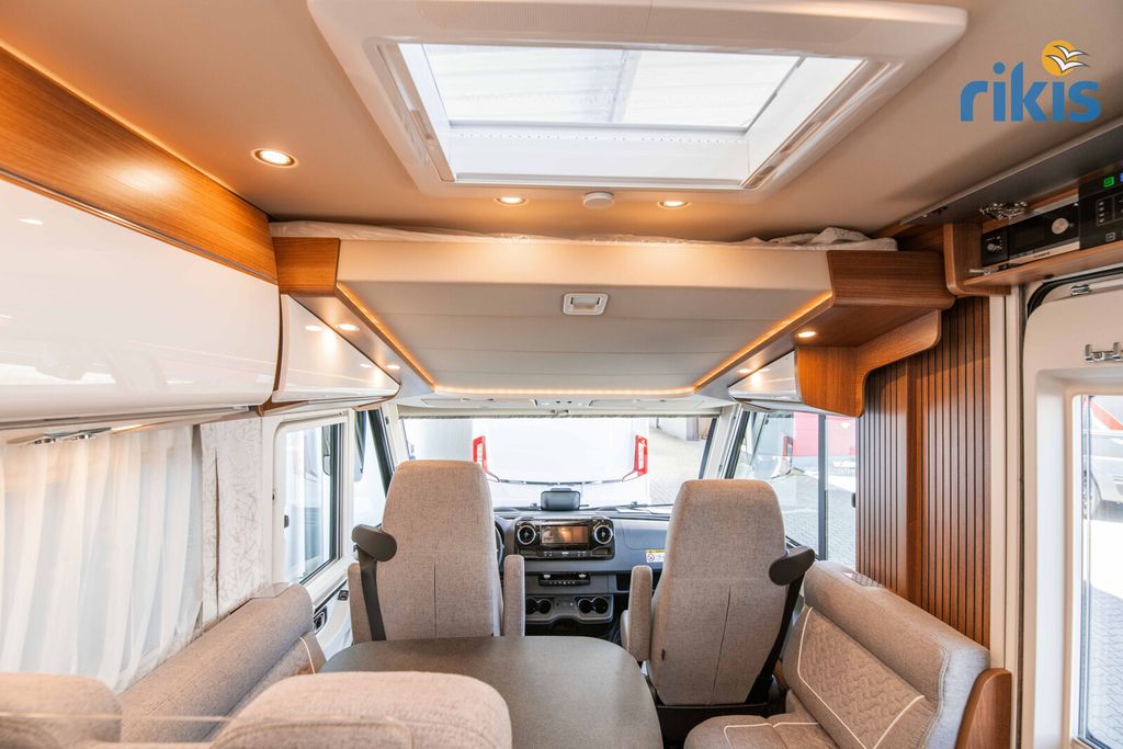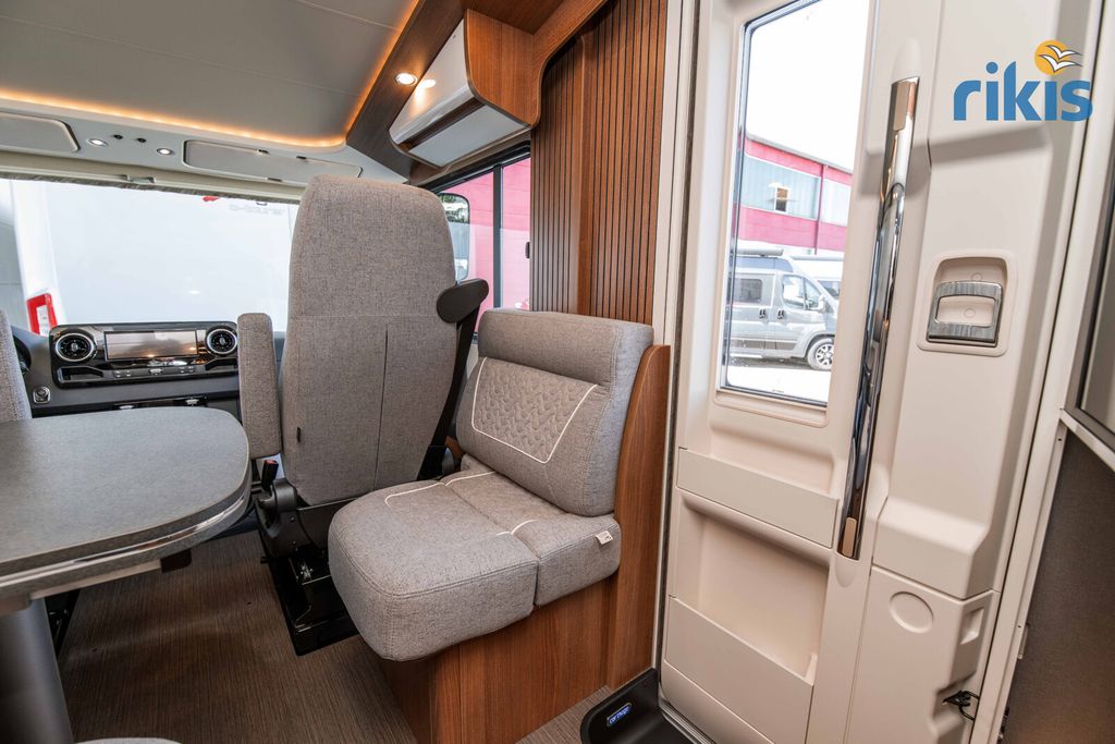 Basis-Plus-Paket 4.2 t (Radzierblenden, Halbautomatische Klimaanlage Tempmatik, Tempomat, Ladebooster, Vorderachse mit erhöhter Traglast, Kraftstofftank 92 Liter, Lederlenkrad mit Option Multifunktionstasten (bei Schaltgetriebe inkl. Leder-Schalthebel), Kombiinstrument mit Farbdisplay, Regensensor, Elektrische Feststellbremse, Fahrerhauskomfortsitze mit Neigungs- und Höhenverstellung (vorn / hinten), Radiovorbereitung mit Dachantenne mit DAB+, Lautsprecher (4x), MBUX 10,2" Multimedia inkl. Navigation und DAB+, Verkehrszeichenassistent, Dachluke Midi-Heki mit LED-Spots über L-Wohnsitzgruppe, Große Rollergaragentür auf der Fahrerseite, XL-Aufbautür "premium two 2.0" (Breite 63 cm) mit Doppelverriegelung, Fenster- und Insektenschutzrollo, SOG-Toilettenentlüftung, Abwasserschlauchset zur komfortablen Entsorgung, USB-Steckdose im Dachstauschrank über Heckbett, Vorbereitung Dachhaubenlüfter elektrisch, Vorbereitung Solaranlage, Vorbereitung Sat-Anlage, Vorbereitung Rückfahrkamera (Einzellinse))