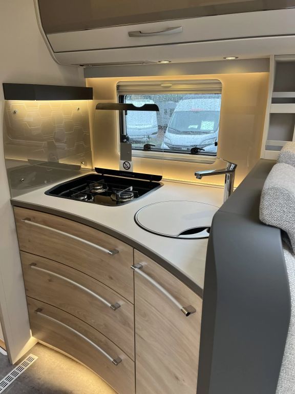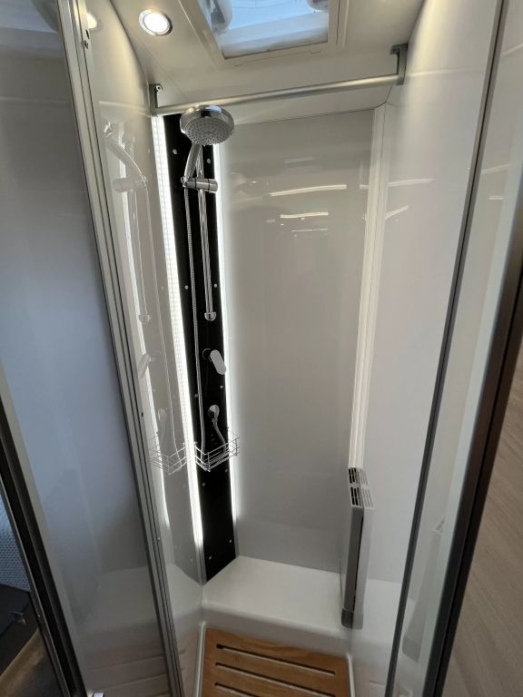 Light Moments - Beleuchteter Einstiegsgriff, Indirekte Beleuchtung im Badezimmer mit beleuchteter Duschkonsole, Sockelbeleuchtung im gesamten Fahrzeug, durchgehender Baldachin mit indirekter Beleuchtung, Küchenrückwand beleuchtet, Indirekte dimmbare Wandflächen-Ambientebeleuchtung