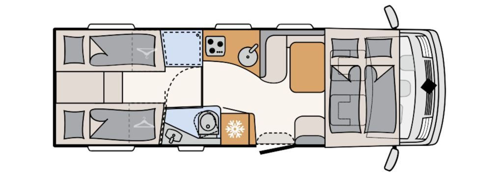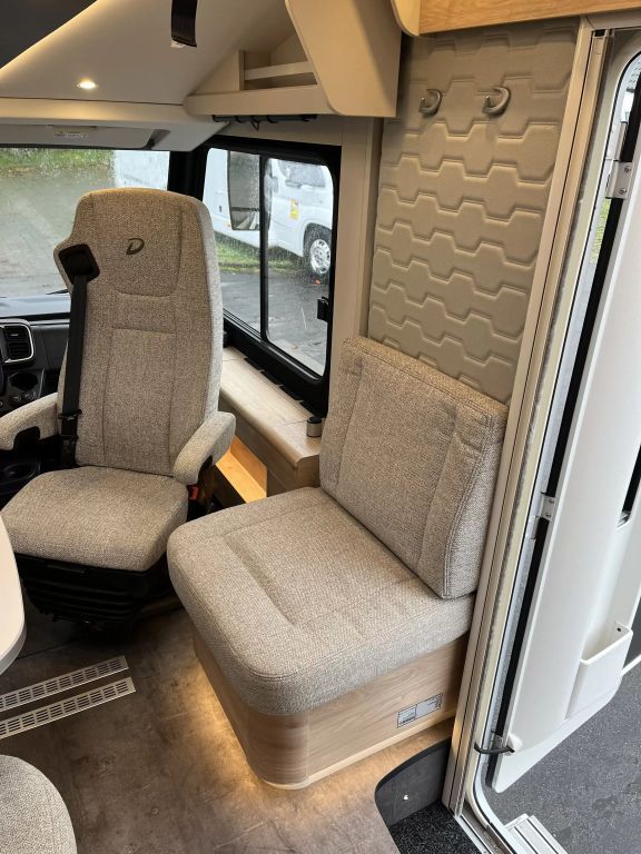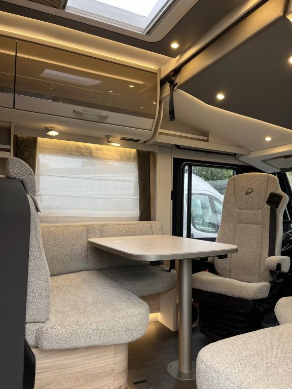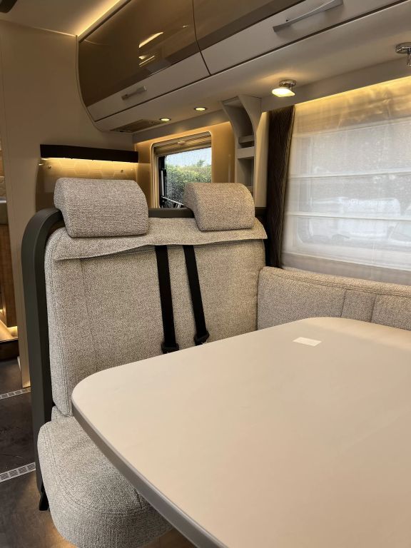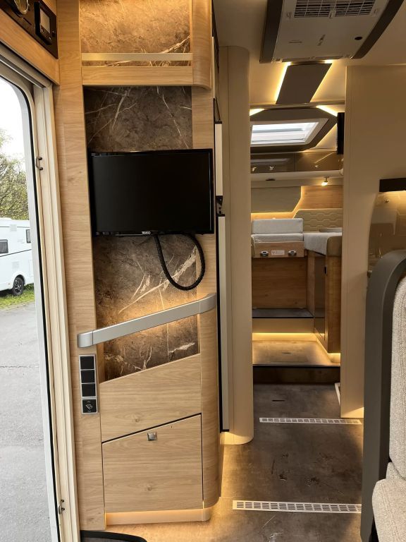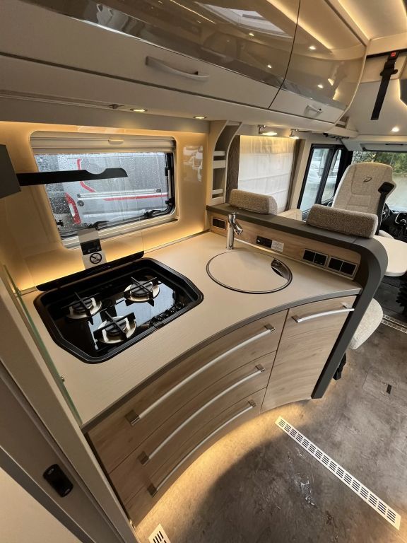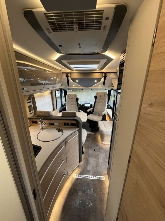 Esprit GT Paket "Grey" 1- Vorbereitung für Radiosystem inkl. Soundpaket im Fahrerhaus, Radioantenne DAB+ auf dem Dach montiert, Fahrerhaustüre links, Panorama-Dachhaube 75x105 cm inkl. beleuchtetem Baldachin im Wohnraum, Indirekte Ambientebeleuchtung über den Dachstauschränken, Stützen (2 Stk.) für Anbau hinten, Elektrischer Frontscheiben-Rollo, Automatische Gasflaschenumschaltung inkl. Crashsensor und EisEx, Dunstabzugshaube (Abluft) mit Zugluft-Stopper, Integrierte Einlinsen Rückfahrkamera, Zentralverriegelung für Fahrerhaus-Wohnraumtüre und Garagentüren, Armaturenbrett mit Aluminium Applik