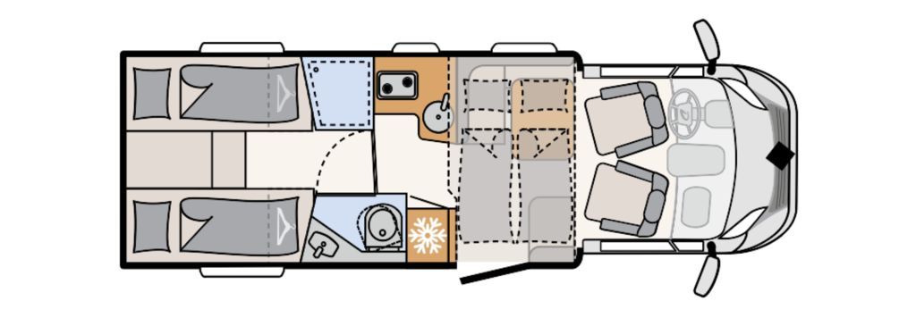Dieser Dethleffs Just 90 7052 EB aus unserer Vermietflotte hat folgende Ausstattung