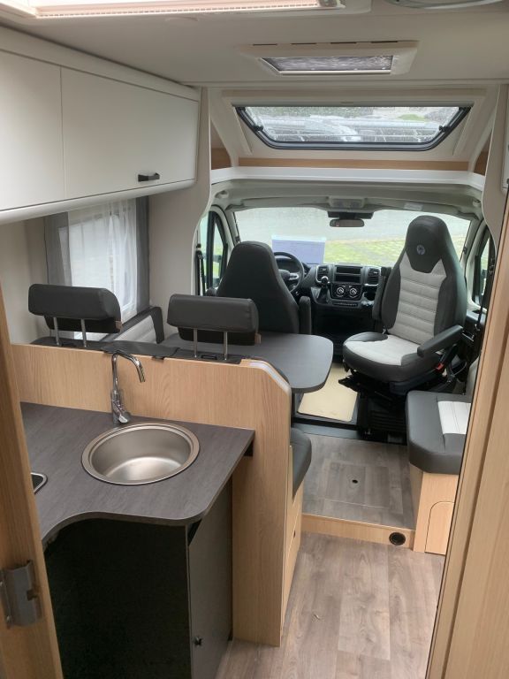 Adventure Ausstattung 68 (Fiat Ducato 3.500 kg | 2.2 Multijet | 103 kW | 140 PS Euro 6 | 6-Gang-Schaltgetriebe, Chassisfarbe Weiß, Adventure Beklebung, Wohnwelt Adventure, Design Applikation Heck, Fenster in Fronthaube, Rahmenfenster, 2. Außenstauraumklappe (Größe modellabhängig), Großer Kühlschrank 156 l mit separatem Frosterfach 29 l, Bettenumbau Einzelbett zu Doppelbett, Paket One Black (Markise, Fahrradträger 3-fach), Bridge Light, Komfort Eingangstür mit Fenster, Fliegengittertür (einteilig), Panoramadachhaube 70 x 50 cm, Klarglasdachhaube 40 x 40 cm, Stoßfänger lackiert, Skid Plate Schwarz, Nebelscheinwerfer, Lenkrad & Schaltknauf in Lederausführung, Luftauslässe mit Applikationen Silber (Techno-Trim), 16" Alufelgen Bi-Color)