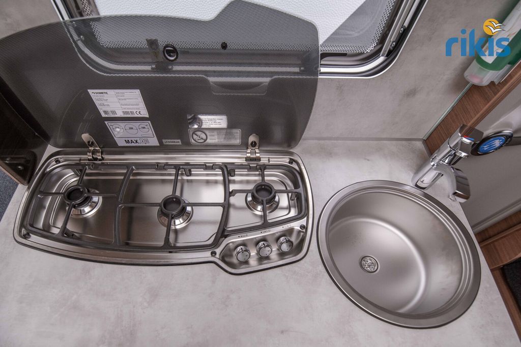 Plus-Paket  (Seifen- und Spülmittelspender, Dachhaube (Hebe-Kipp) 96 x 65 cm, mit Insektenschutz und Verdunklung (Bug), Wasserfiltersystem "bluuwater", MediKit Gutschein, AL-KO AAA Premium Brake, Stützrad mit integrierter Stützlastanzeige, AL-KO Schwerlastkurbelstützen, Insektenschutztür)