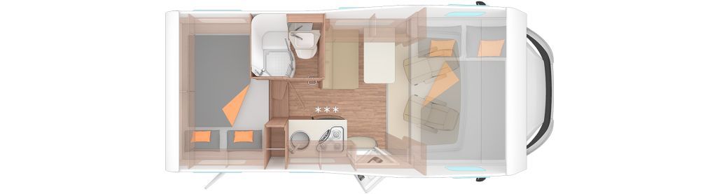 Liegeflächen Alkovenbett (210x140); Heck (210x135/115)