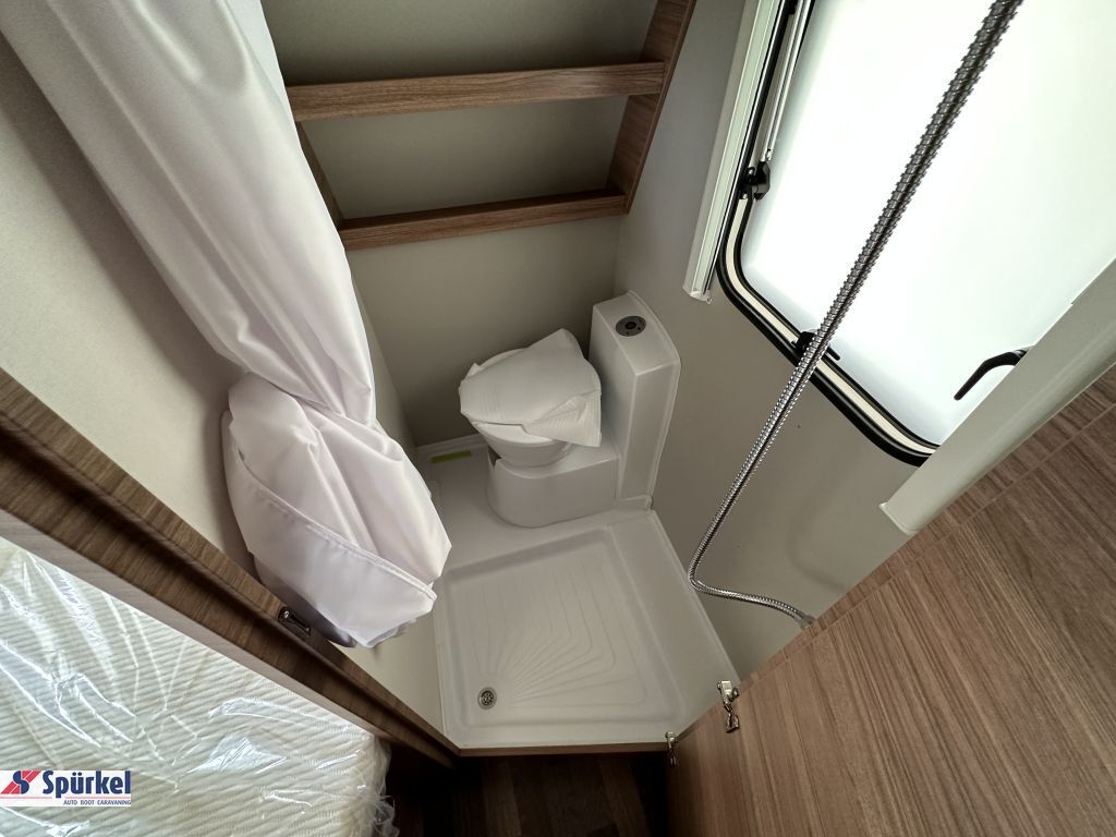 Advanced-Paket Dachhaube (Hebe-Kipp) 70 x 50 cm, mit Insektenschutz und Verdunklung (Mitte) / Insektenschutztür / TRUMA Therme mit Anschluss für Küche und T-Raum (nur 230 V Betrieb) / Abwassertank 25 Liter, rollbar / Duschausbau Waschraum Brausearmatur mit Halter und Duschvorhang