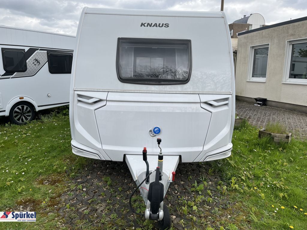 Design-Paket – Monoachser Deichselabdeckung/ Seitenwände in Glattblech – Monoachser/ KNAUS Embleme im Bug und im Heck, schwarz/chrom/ Seitenwände in weiß – Monoachser/ 17" Leichtmetallfelgen – Monoachser, Schwarzglanz-Frontpoliert im exklusiven KNAUS Design