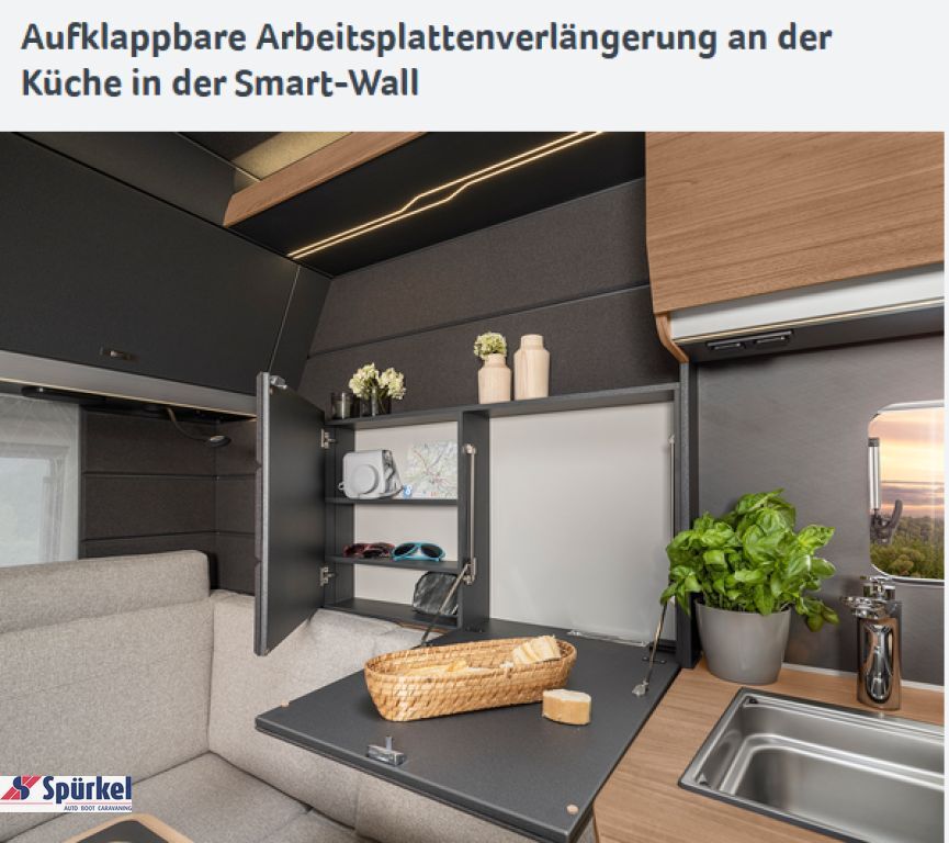 Aufklappbare Arbeitsplattenverlängerung an der Küche in der Smart-Wall
