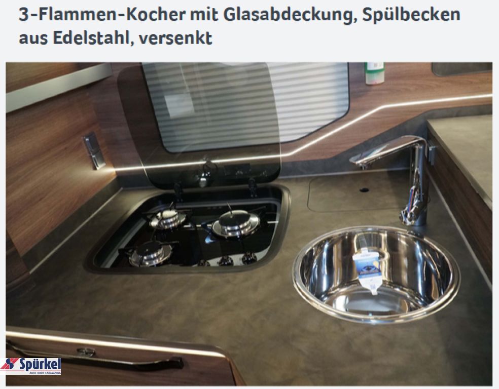 3-Flammen-Kocher mit Glasabdeckung, Spülbecken aus Edelstahl, versenkt