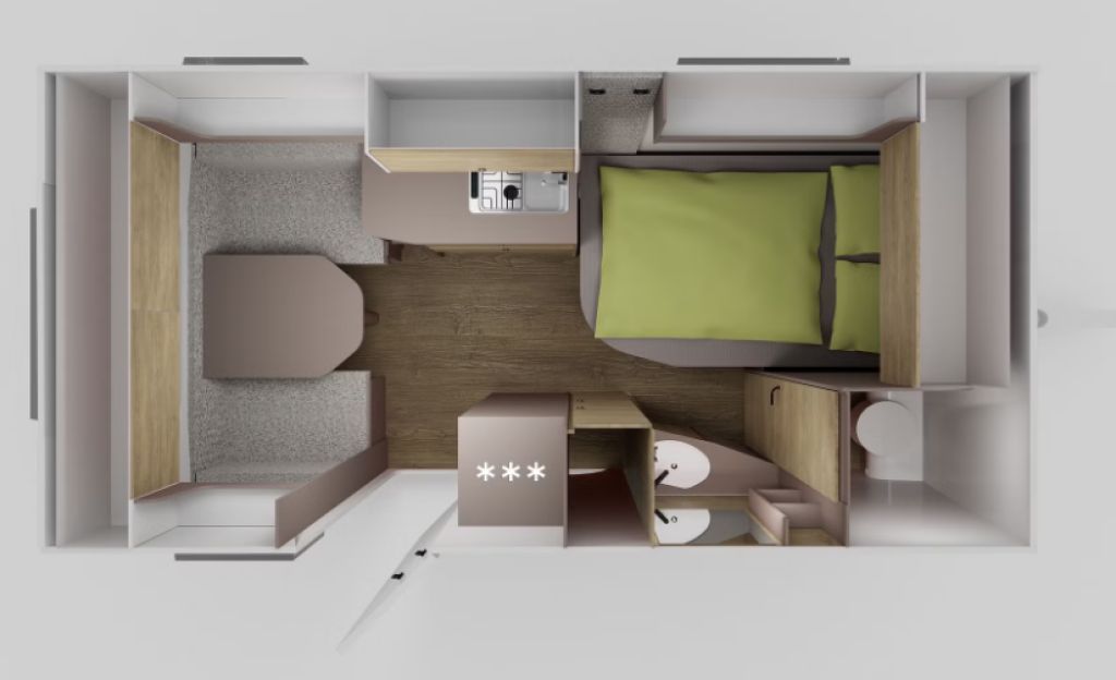 Der Next 380 ist ein kompakter und dennoch hochwertig ausgestatteter Wohnwagen, der sich perfekt für Paare oder kleine Familien eignet.