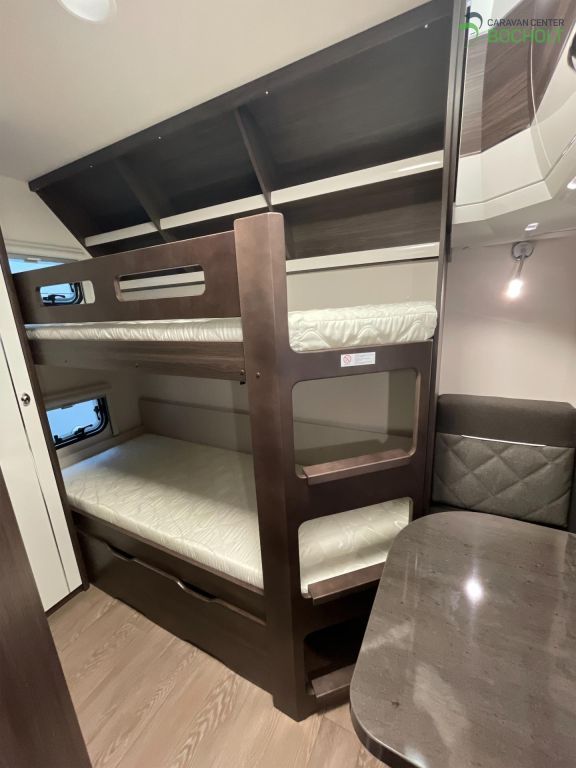 Natürlich hat auch diese Baureihe wieder die umfangreiche Grundausstattung wie Antischlingerkupplung, Auflaufbremssystem mit automatischer Bremsnachstellung, Fliegenschutztür im Eingang, Verdunkelung und Fliegenschutz an allen Fenstern und Dachhauben, tolles Beleuchtungskonzept, PVC-Bodenbelag strapazierfähig und pflegeleicht, viele Staukästen mit Soft- Close Scharnieren, Winterrückenlehnen, TV-Kabelverlegung, Slim-Tower uvm.