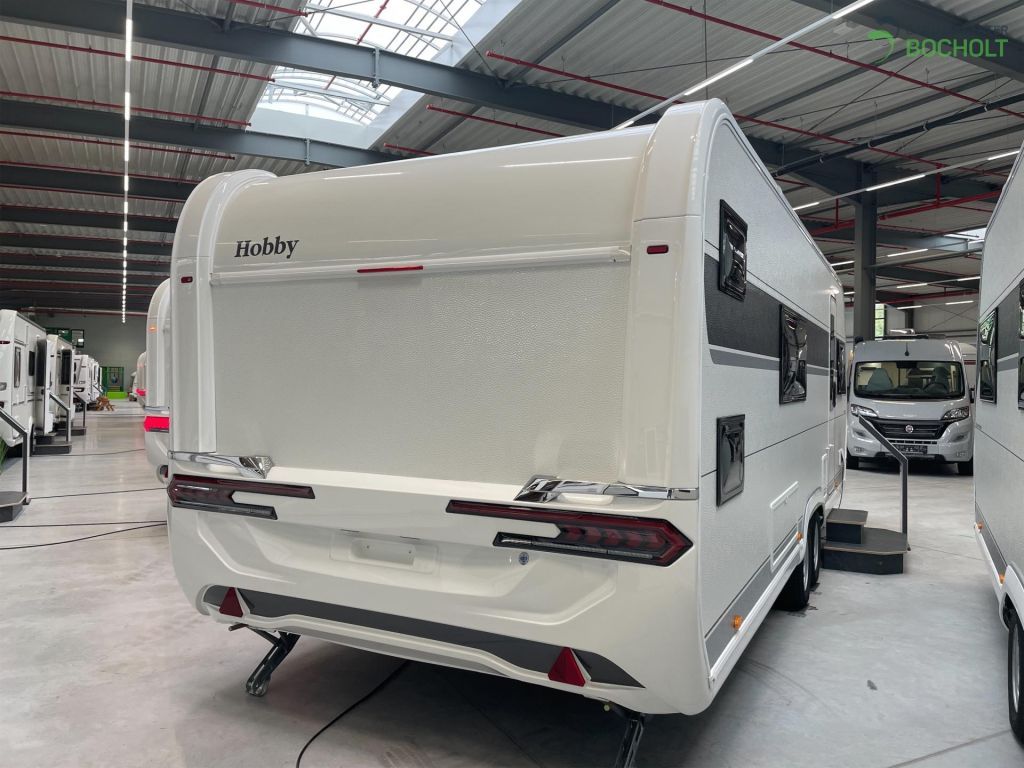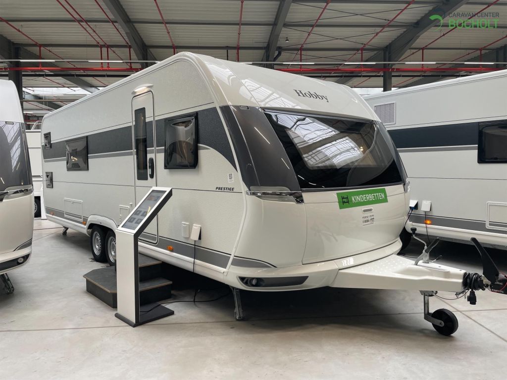Der neue Hobby Prestige 650 KFU Modell 2025 ist ein Wohnwagen für die ganze Familie mit Etagenbetten, französischem Bett, Rundsitzgruppe, Kindersitzgruppe, Küchenzeile und steht als Musterwagen bei uns in der Ausstellung.
