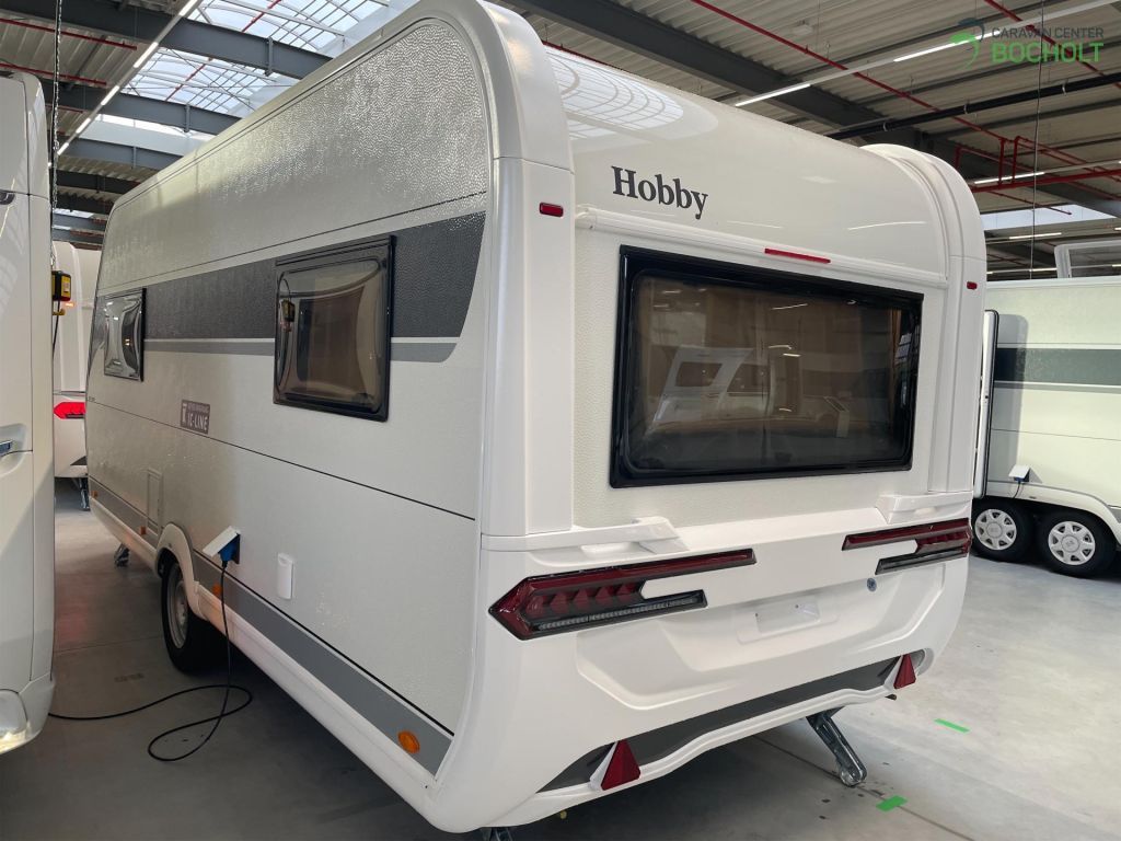 Der Hobby De Luxe 495 UL IC-Line Intercaravaning Modell 2025 mit Einzelbetten, Rundsitzgruppe und Küchenzeile.
