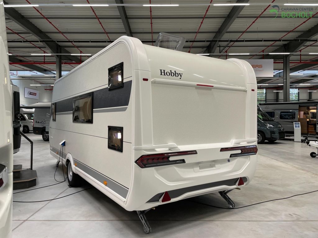 Der neue Hobby De Luxe 540 KMFe Modell 2025 ist ein Wohnwagen für die ganze Familie mit Etagenbetten, französischem Bett, Mittelsitzgruppe, Küchenzeile und steht als Musterwagen bei uns in der Ausstellung