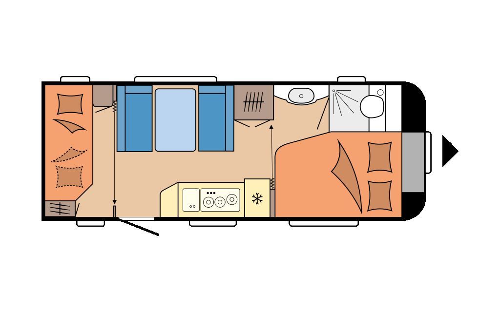Natürlich hat auch diese Baureihe wieder die umfangreiche Grundausstattung wie Antischlingerkupplung, Auflaufbremssystem mit automatischer Bremsnachstellung, Fliegenschutztür im Eingang, Verdunkelung und Fliegenschutz an allen Fenstern und Dachhauben, tolles Beleuchtungskonzept, PVC-Bodenbelag strapazierfähig und pflegeleicht, viele Staukästen mit Soft- Close Scharnieren, Winterrückenlehnen, TV-Kabelverlegung, Slim-Tower uvm.