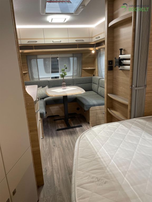 Natürlich hat auch diese Baureihe wieder die umfangreiche Grundausstattung wie Antischlingerkupplung, Auflaufbremssystem mit automatischer Bremsnachstellung, Ein-Schlüssel-Schließsystem, Ausstellfenster doppelt verglast und getönt, Beleuchtung LED, Lattenroste mit vollflexiblen und dauerelastischen Gelenkbrücken sowie Härteeinstellung, Federkernmatratze, PVC-Bodenbelag, Rückenpolster ergonomisch geformt, Staukästen in Küche mit Soft-Close-Scharnieren, Winterrückenlehnen, TV-Kabelverlegung, Slim-Tower-Kühlschrank uvm .