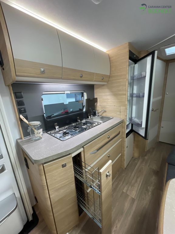Natürlich hat auch die 2025 Baureihe wieder die umfangreiche Grundausstattung wie Antischlingerkupplung, Auflaufbremssystem mit automatischer Bremsnachstellung, Ein-Schlüssel-Schließsystem, Ausstellfenster doppelt verglast und getönt, Beleuchtung LED, Lattenroste mit vollflexiblen und dauerelastischen Gelenkbrücken sowie Härteeinstellung, Federkernmatratze, PVC-Bodenbelag, Rückenpolster ergonomisch geformt, Staukästen in Küche mit Soft-Close-Scharnieren, Winterrückenlehnen, TV-Kabelverlegung, Slim-Tower-Kühlschrank uvm.