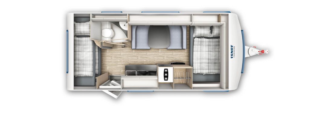 Der neue Fendt Apero 495 SKM Modell 2025 ist ein kompakter Reisewohnwagen für die ganze Familie mit Etagenbetten, Querbett ,einer gemütlichen Mittelsitzgruppe und einer schönen Küchenzeile,