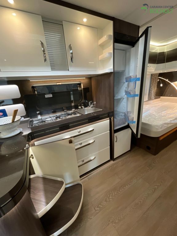 Natürlich hat auch diese Baureihe wieder die umfangreiche Grundausstattung wie Antischlingerkupplung, Auflaufbremssystem mit automatischer Bremsnachstellung, Fliegenschutztür im Eingang, Verdunkelung und Fliegenschutz an allen Fenstern und Dachhauben, tolles Beleuchtungskonzept, PVC-Bodenbelag strapazierfähig und pflegeleicht, viele Staukästen mit Soft- Close Scharnieren, Winterrückenlehnen, TV-Kabelverlegung, Slim-Tower uvm.
