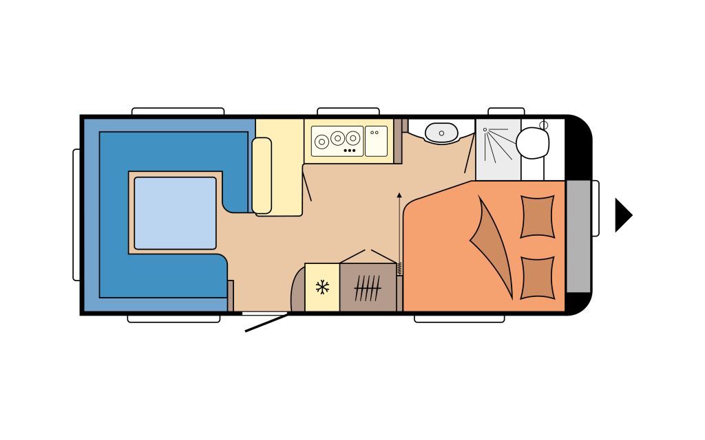 Natürlich hat auch diese Baureihe wieder die umfangreiche Grundausstattung wie Antischlingerkupplung, Auflaufbremssystem mit automatischer Bremsnachstellung, Fliegenschutztür im Eingang, Verdunkelung und Fliegenschutz an allen Fenstern und Dachhauben, tolles Beleuchtungskonzept, PVC-Bodenbelag strapazierfähig und pflegeleicht, viele Staukästen mit Soft- Close Scharnieren, Winterrückenlehnen, TV-Kabelverlegung, Slim-Tower uvm.