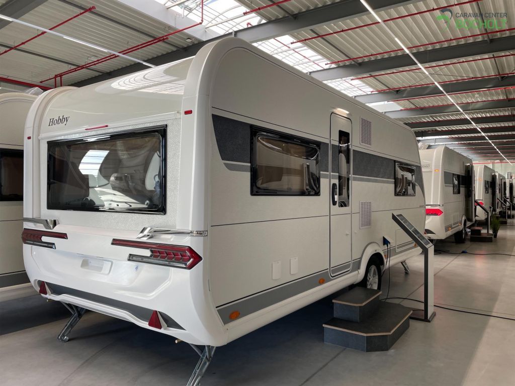 Der neue Hobby Excellent 560 CFe Modell 2025 mit französischem Bett, einer großen Rundsitzgruppe und einer L-Küchenzeile steht als Musterwagen bei uns in der Ausstellung.