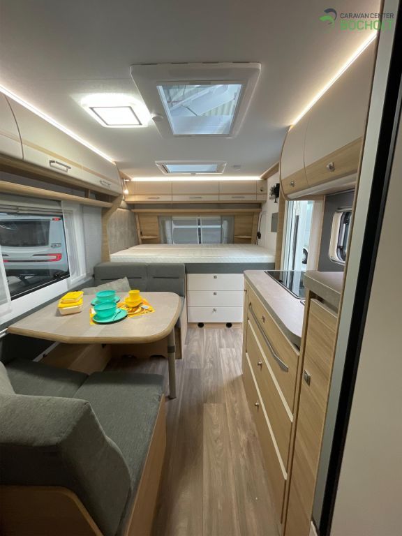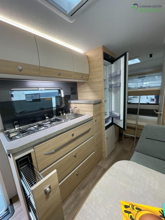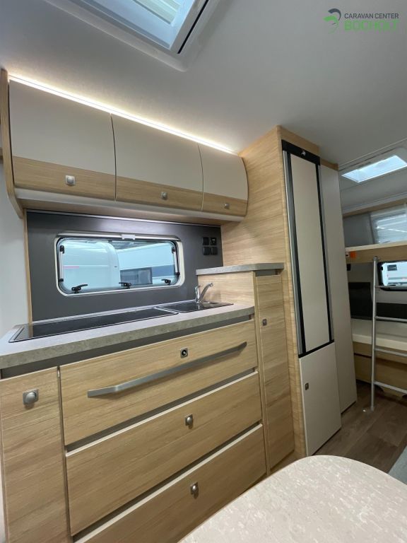 Natürlich hat auch die Baureihe 2025 wieder die umfangreiche Grundausstattung wie Antischlingerkupplung, Auflaufbremssystem mit automatischer Bremsnachstellung, Ein-Schlüssel-Schließsystem, Ausstellfenster doppelt verglast und getönt, Beleuchtung LED, Lattenroste mit vollflexiblen und dauerelastischen Gelenkbrücken sowie Härteeinstellung, Federkernmatratzen, PVC-Bodenbelag, Rückenpolster ergonomisch geformt, Staukästen in Küche mit Soft-Close-Scharnieren, Winterrückenlehnen, TV-Kabelverlegung, Slim-Tower-Kühlschrank uvm.