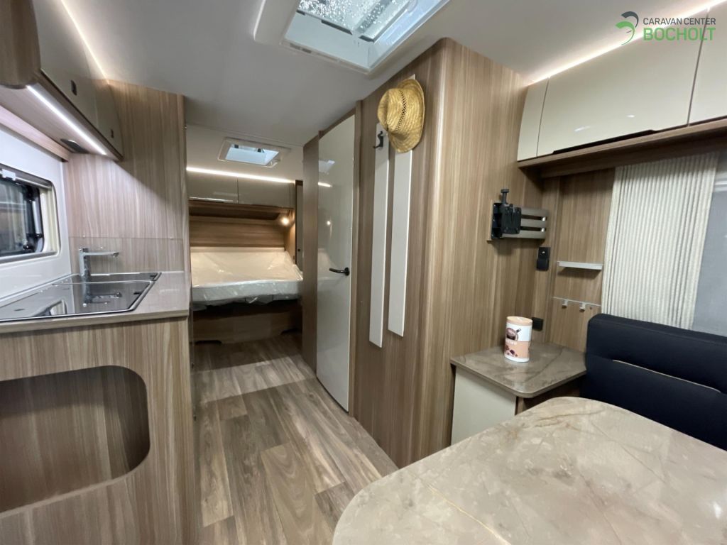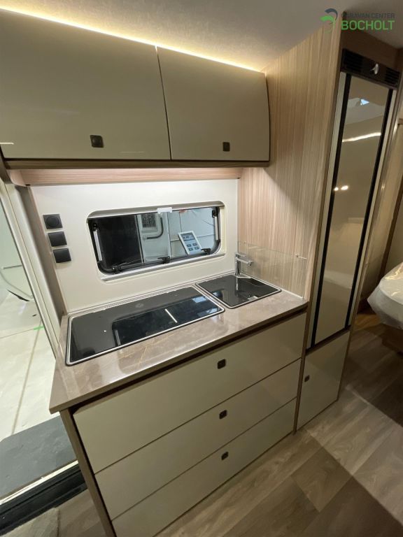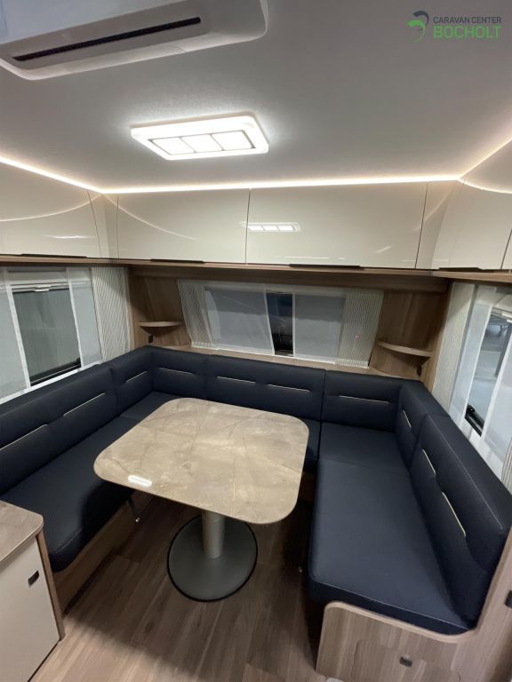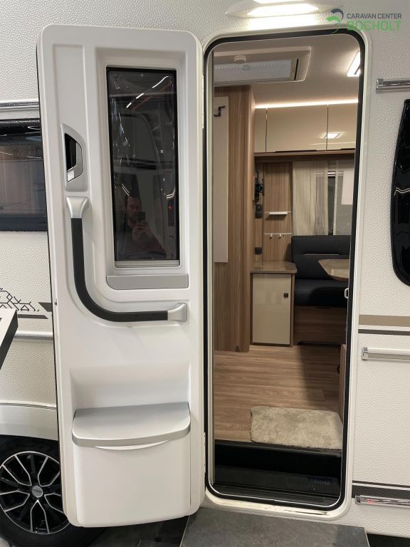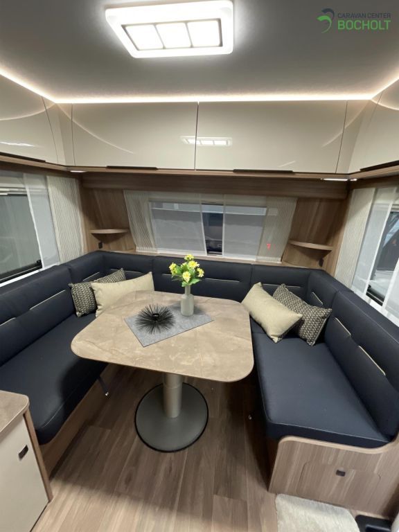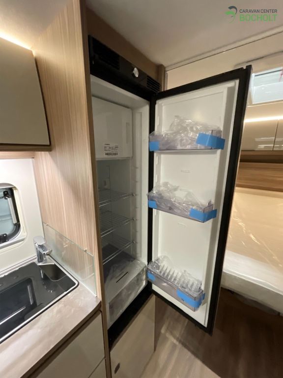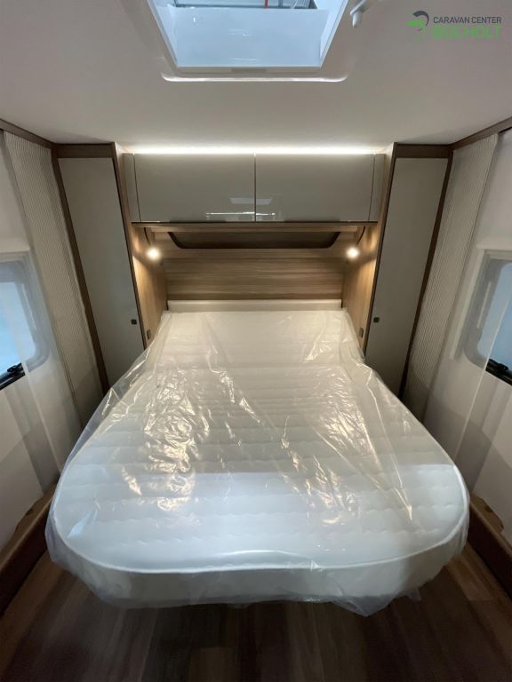 Natürlich hat auch diese Baureihe wieder die umfangreiche Grundausstattung wie Antischlingerkupplung, Auflaufbremssystem mit automatischer Bremsnachstellung, Ein-Schlüssel-Schließsystem, Stützlastanzeige, Ausstellfenster doppelt verglast und getönt, Beleuchtung LED, Lattenroste mit vollflexiblen und dauerelastischen Gelenkbrücken sowie Härteeinstellung, PVC-Bodenbelag, Teppichboden gekettelt, Staukästen mit Soft-Close-Scharnieren, TV-Kabelverlegung, Slim-Tower-Kompressor-Kühlschrank, Fliegenschutztür, Alufelgen uvm.