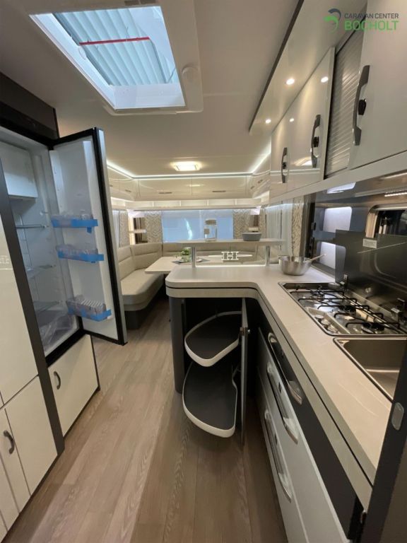 Natürlich hat auch diese Baureihe wieder die umfangreiche Grundausstattung wie Antischlingerkupplung, Auflaufbremssystem mit automatischer Bremsnachstellung, Fliegenschutztür im Eingang, Verdunkelung und Fliegenschutz an allen Fenstern und Dachhauben, tolles Beleuchtungskonzept, PVC-Bodenbelag strapazierfähig und pflegeleicht, viele Staukästen mit Soft- Close Scharnieren, Winterrückenlehnen, TV-Kabelverlegung, Slim-Tower uvm.