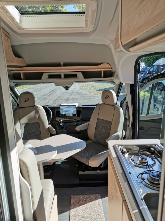 90-Jahre-Jubiläumsausstattung Ford 590 C Teil 2/2 zweifarbiges Armaturenbrett, Handschuhfach mit Deckel, zusätzlich abschließbar, Rahmenfenster, Klimaanlage manuell vorn, inkl. Staub- und Pollenfenster, Privacy Verglasung der Heckscheiben, Fenster im Heck links, Fenster im Bad, Zusätzliche Doppel-USB-Steckdose im Bug links (bereits bei technischen Daten inkludiert), Kabelvorbereitung für Rückfahrkamera, TV-Vorbereitung 12 V, SAT-Anschluss, TV-Halter, Vorbereitung Solarmodule, Indirekte Beleuchtung, dimmbar, Markise , Drehplatte für Tischerweiterung, Fahrerhausteppich