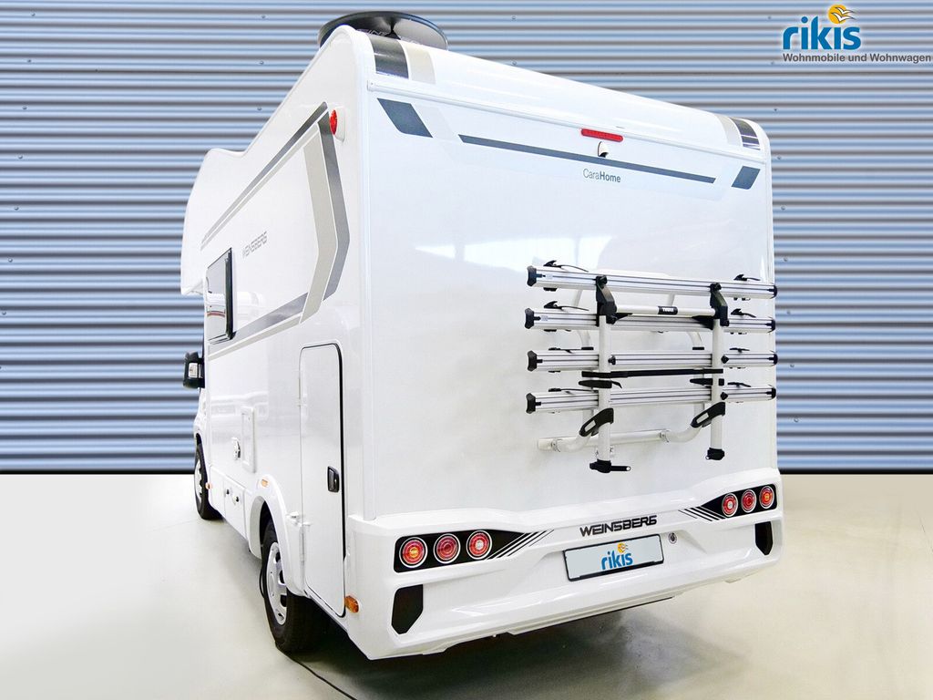 Vermieter-Paket "Deluxe" - CaraHome (Einstiegstufe elektrisch, Fahrradträger für 4 Räder, Heck THULE ELITE G2, Garagentür 62,5 x 110 cm, links, Zusätzliche Zurrschienen, in der Garage oben (2 Stück), Aufkleber-Set ?Miet-Fahrzeug?, Radzierblenden im WEINSBERG Design, Traktionshilfe ?Traction Plus?, inkl. Bergabfahrhilfe, Reifenluftdrucksensoren, Bezug ?Turin? für Piloten-Komfortsitze, Kraftstofftank 90 Liter, Allwetterbereifung, Rückfahrkamera, inkl. Verkabelung, All-in-One Navigationssystem, velocate® GPS-Tracker, Head-up Display, velocate® LIFETIME-Lizenz mit unbegrenzter, persönlicher, EU-weiter Trackingfunktion, TRUMA DuoControl CS (inkl. Gasfilter), Gaswarner, Markise 355 x 250 cm, weiß, Alkovenbett klappbar, Rauchmelder, ISOFIX-System (2 Kindersitze), Zusätzliche Bezugsstoffgarnitur für Wohnraumpolster, Möbelverriegelungen in Metall)