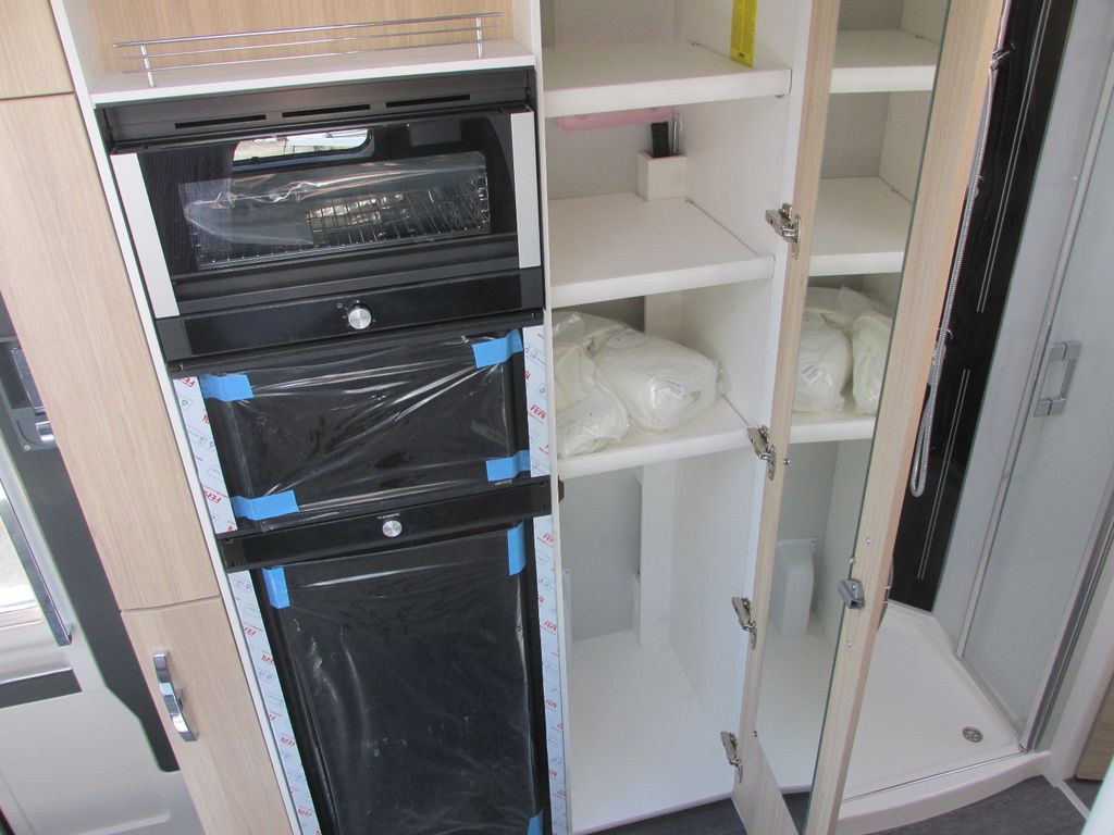 Luxury Ausstattung Int. Serie bestehend aus elektrischem Verdunklungsplissee anstelle manuellem Verdunklungsplissee, zweiter Gelbatterie 80 Ah inkl. Zusatzladegerät 22 Ah, zus. Steckdosen in hinterer Heckgarage auf Beifahrerseite 1x 12 V und 1x 230 V, ALDE Compact 3030 HE Warmwasserheizung (anstelle Truma-Heizung)