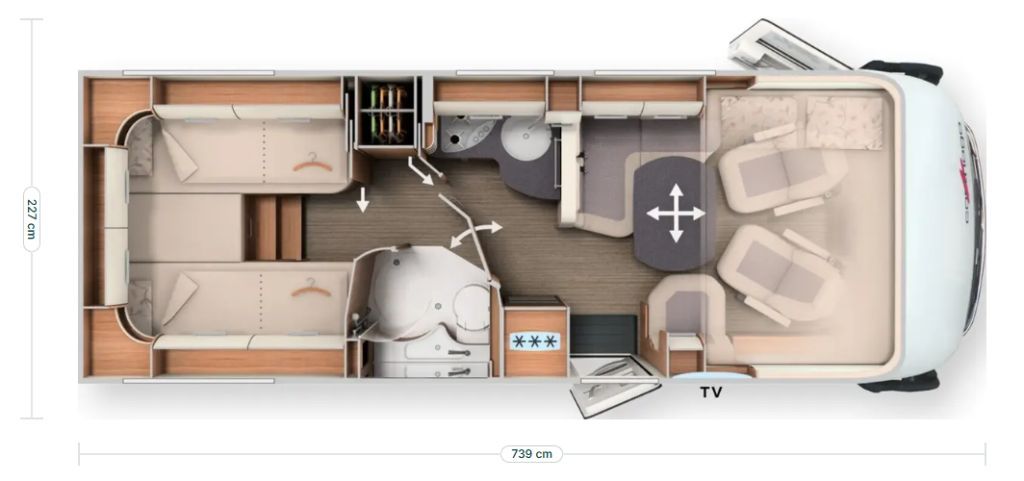 Dieses Modell steht für Qualität, durchdachte Raumaufteilung und bekannte Fiat-Technik. Der Grundriss hat sich über viele Jahre hinweg bewährt – für ein sicheres und vertrautes Wohngefühl, ganz gleich, wo Sie unterwegs sind.