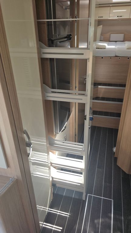 schmaler Apothekerauszug, raumhoch zwischen Kühlschrank und Kleiderschrank