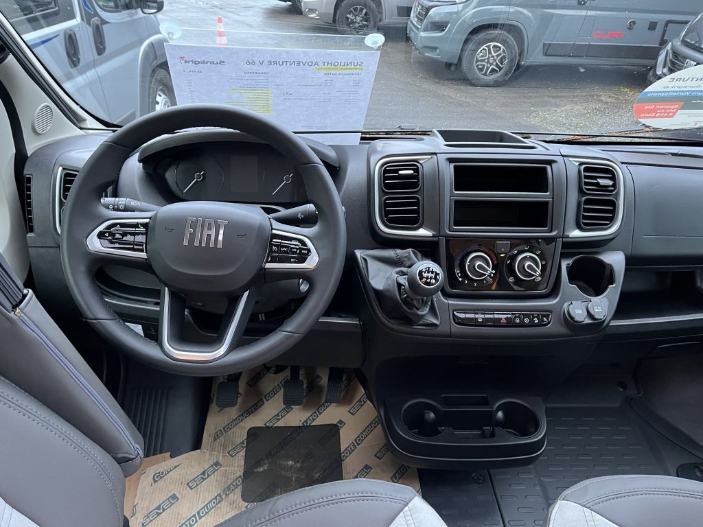 Editionsausstattung Adventure Fiat Ducato 3.500 kg - 2.2 Multijet - 103 kW / 140 PS Euro 6 - 6-Gang-Schaltgetriebe; Chassisfarbe Weiß; Adventure Beklebung; Wohnwelt Adventure; Fenster in Fronthaube; 2. Außenstauraumklappe (Größe modellabhängig) ; Bettenumbau Einzelbett zu Doppelbett (nur bei V 66); Paket One Black (Markise, Fahrradträger 3-fach); Basic Paket; Paket Stoßfänger lackiert ; Paket Alufelgen Schwarz