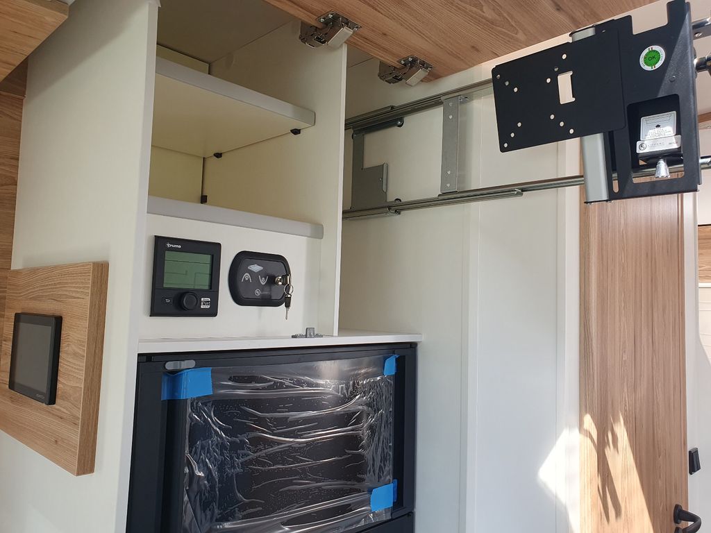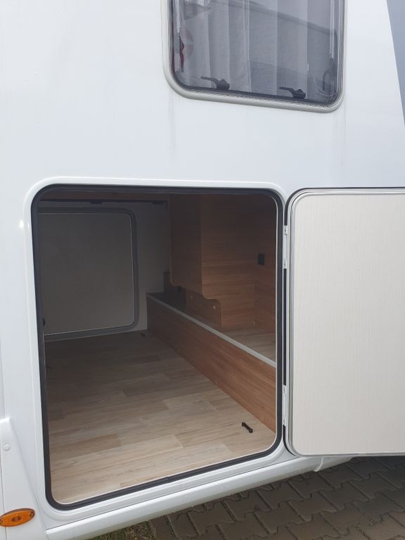 Die beiden Einzelbetten des P746FGJ passen sich Ihren Vorlieben und Bedürfnissen an. In der hohen Version (Standard) befindet sich darunter eine große durchgehende Heckgarage hinter den Radkästen und an jedem Fußende steht ein Kleiderschrank.